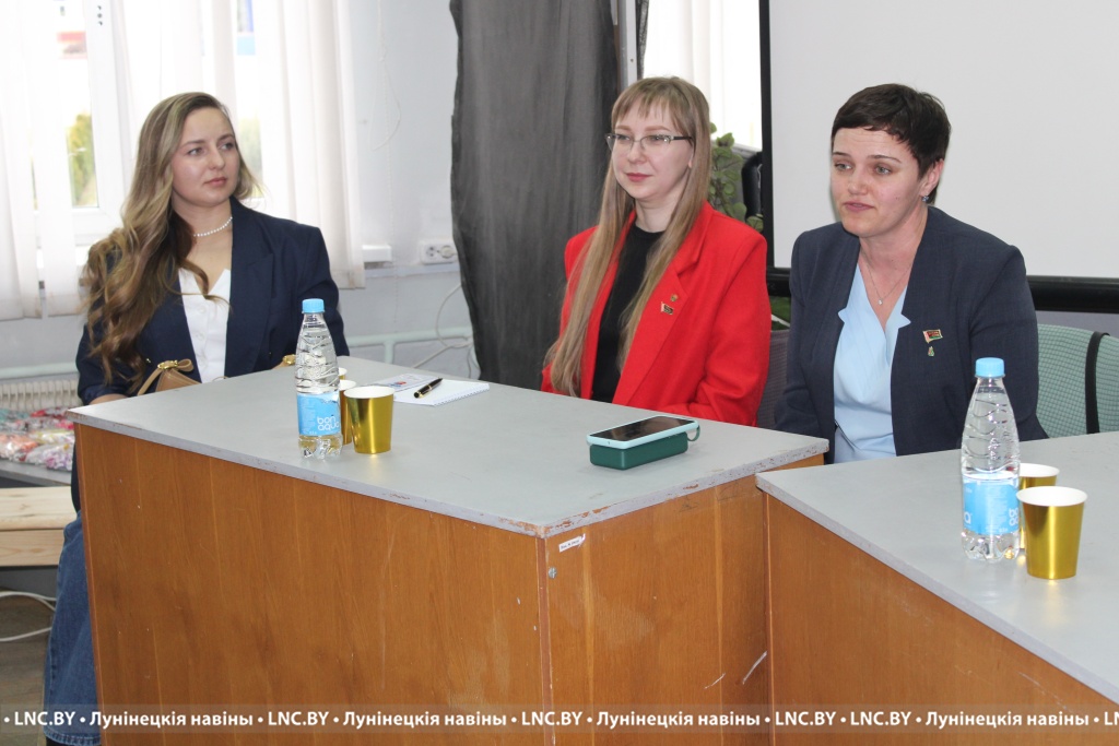 На встречу с учащимися лунинецких средних школ №1, №2 и №3 имени Героя Советского Союза А.В. Петрушевского пригласили представительниц разных сфер жизнедеятельности района. О своем видении настоящего и будущего в сфере цифровых технологий рассказали заведующий сектором культуры районного исполнительного комитета Татьяна Ливинец, председатель районной организации РОО «Белая Русь» Раиса Мозырчук, первый секретарь райкома БРСМ Янина Антонович, начальник отдела молодежной политики и корпоративного развития РУПП «Гранит» Юлия Самойленко, блогер Юлия Ярохович, врач-стоматолог, нутрициолог и фитнес-тренер Анна Жук, главный специалист по организации закупок ОАО «Вульковский рассвет» Елена Коцуба.