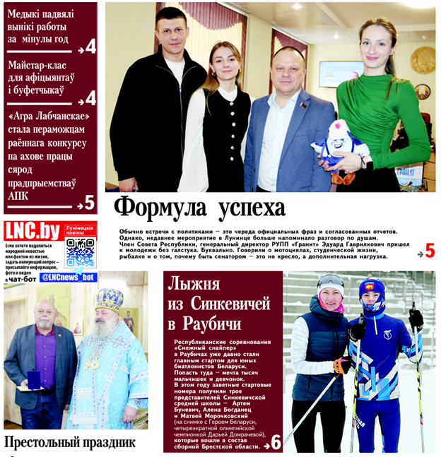 "Формула успеха, феномен Синкевичской школы и кадры в медицине" — читайте в номере газеты "Лунінецкія навіны" за 18 февраля