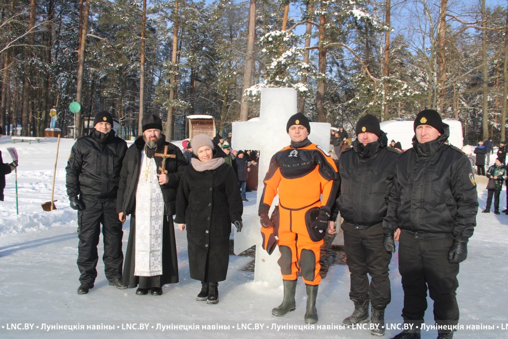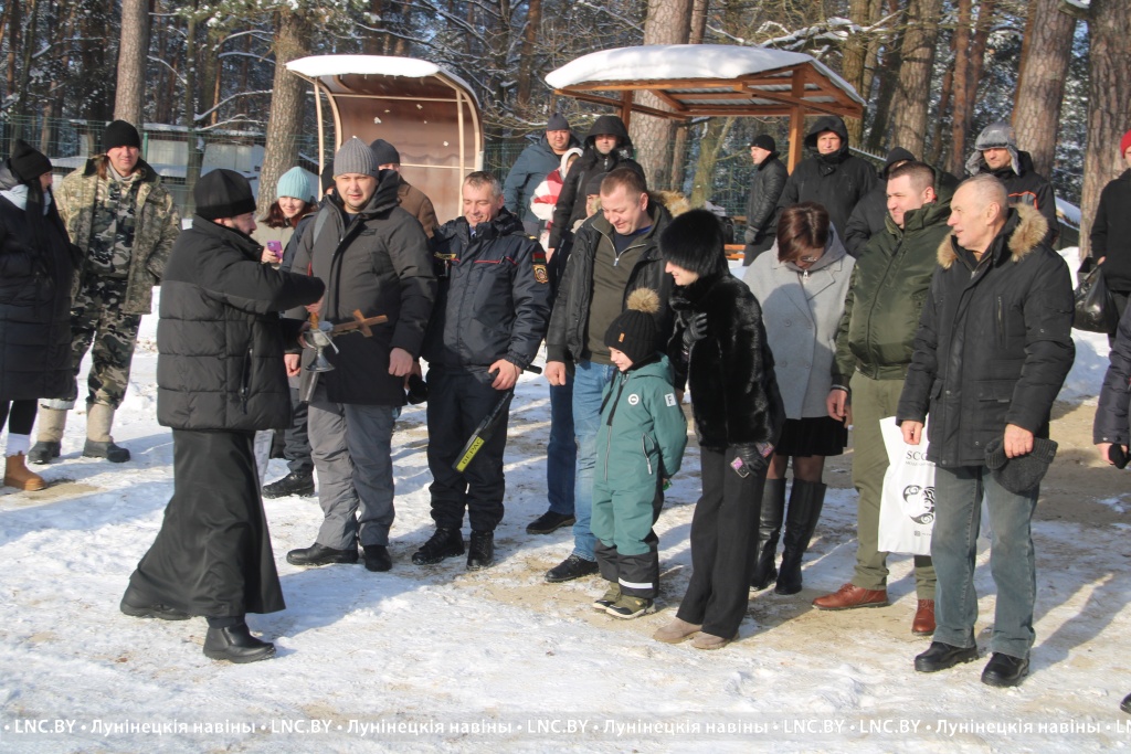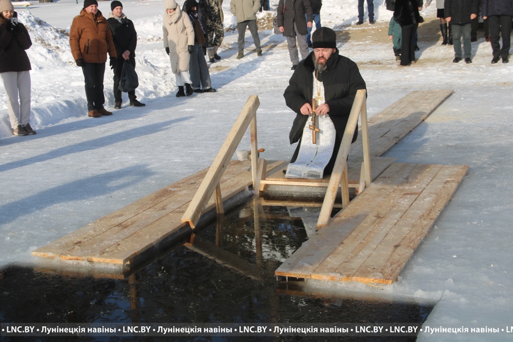 Перед началом помощник благочинного Лунинецкого округа по общественным связям протоиерей Иоанн Петренко совершил чин освящения воды. Церковь не требует от каждого верующего обязательно нырять в прорубь на морозе. Крещение нельзя воспринимать как развлечение и связывать только с восторгом от погружения в ледяную воду купели. Необходимо осознать смысл праздника, верить в Господа и строго соблюдать духовные традиции.
