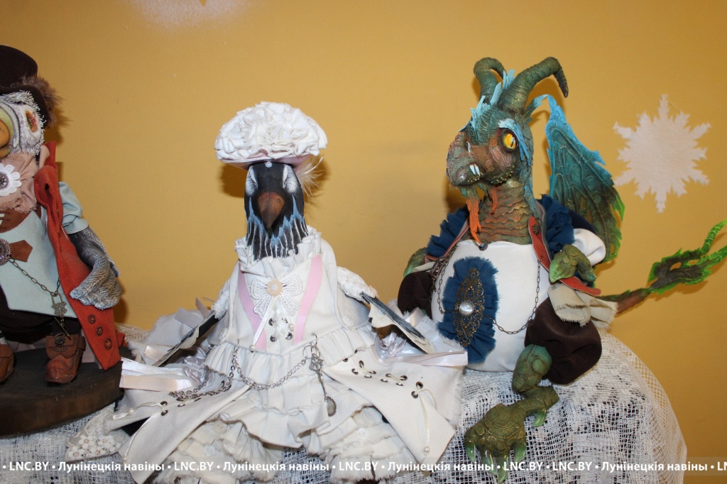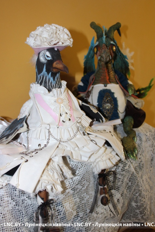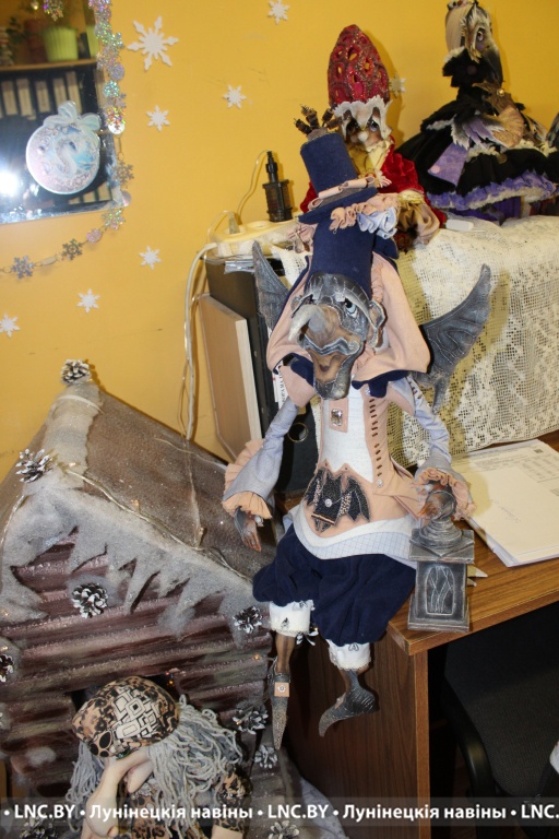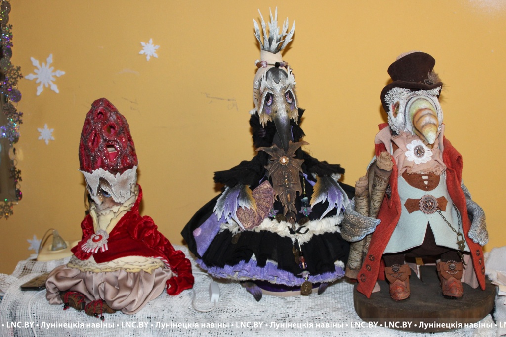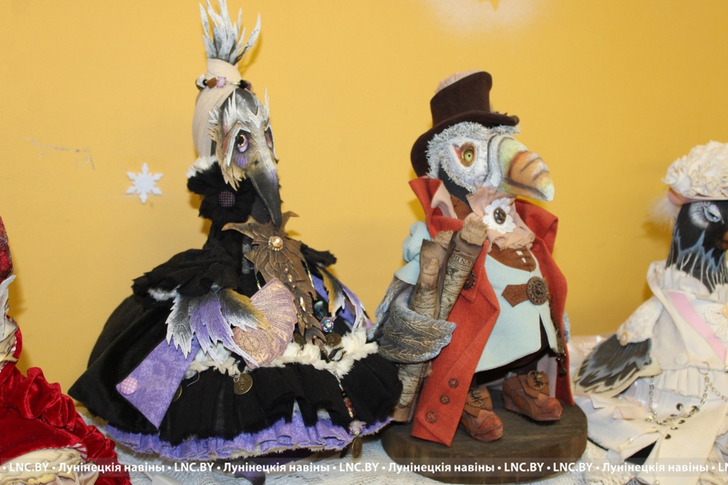 Величественная ворона в пышном ретро-платье, обаятельный комар во фраке со светящимся в руке фонариком, змея в пижаме и ночном колпаке, читающая книгу… За неполные три года специалист по начислениям местного цеха Лунинецкого ЖКХ сделала из обычной ткани более трех десятков уникальных кукол, которые станут отличным украшением любого интерьера.