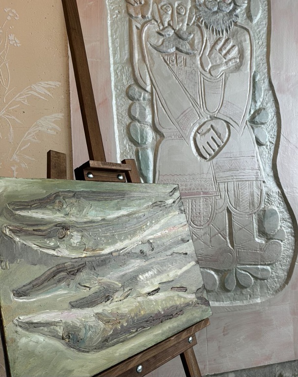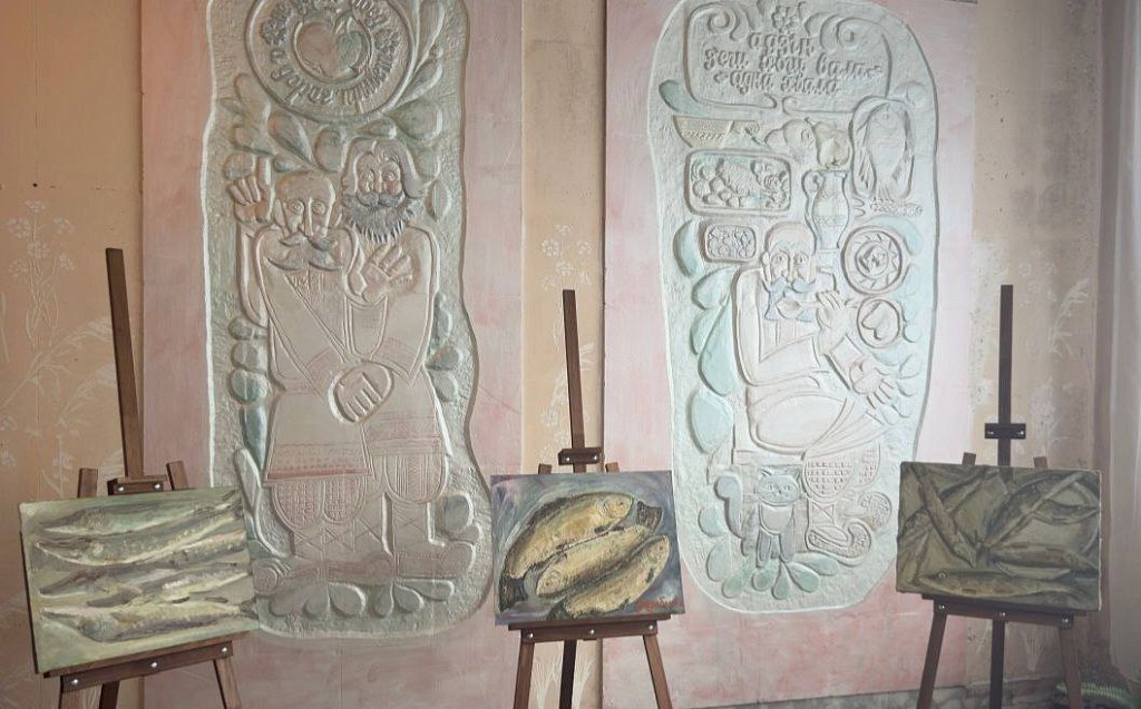 Барельеф из известняка высекали вручную — резцами, по частям, собирая в единое декоративное тематическое панно. Главная цель — сохранить и передать беларускую национальную культуру, запечатлев в образах знакомые каждому моменты застолья и народную мудрость.