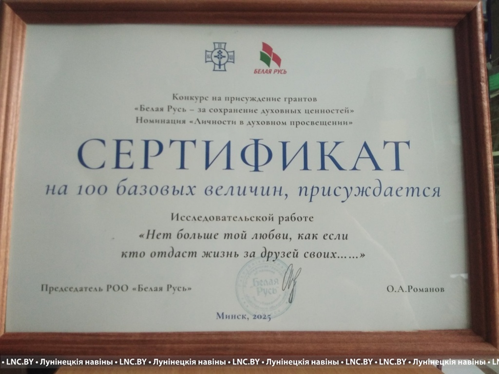 – Участвовать в конкурсе «Белая Русь» – за сохранение духовных ценностей» мы стремились все вместе, ведь это очень интересно и захватывающе, подготовка помогает освежить имеющиеся знания и приобрести новые, – рассказывает Нина Николаевна. – И старались не зря, в номинации «Личности в духовном просвещении» мы стали лучшими. За полученные средства приобретена компьютерная техника, благодаря которой улучшилась материально-техническая база нашего учреждения образования. Но деньги не самое главное: сердца победителей переполнены радостью от осознания, что смогли справиться с задачей, сделали все правильно и качественно. Поверьте, эти ощущения непередаваемые. Думаю, для ребят наша победа станет стимулом для дальнейших исследований, поможет поверить в то, что при желании можно достичь очень многого.