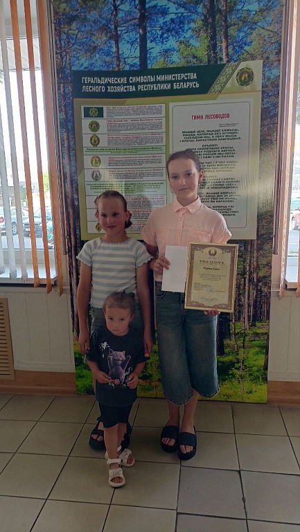 На основании открытого онлайн-голосования в телеграм-канале Белорусского профсоюза работников леса и природопользования в средней возрастной группе (дети от 9 до 12 лет) победителем признана Дарья Боровенникова. По результатам оценки работ Республиканским комитетом профсоюза в средней возрастной группе (дети от 9 до 12 лет) победителем признана Дарья Туровец. Они награждены грамотами и призом в денежном выражении 150 рублей каждому.