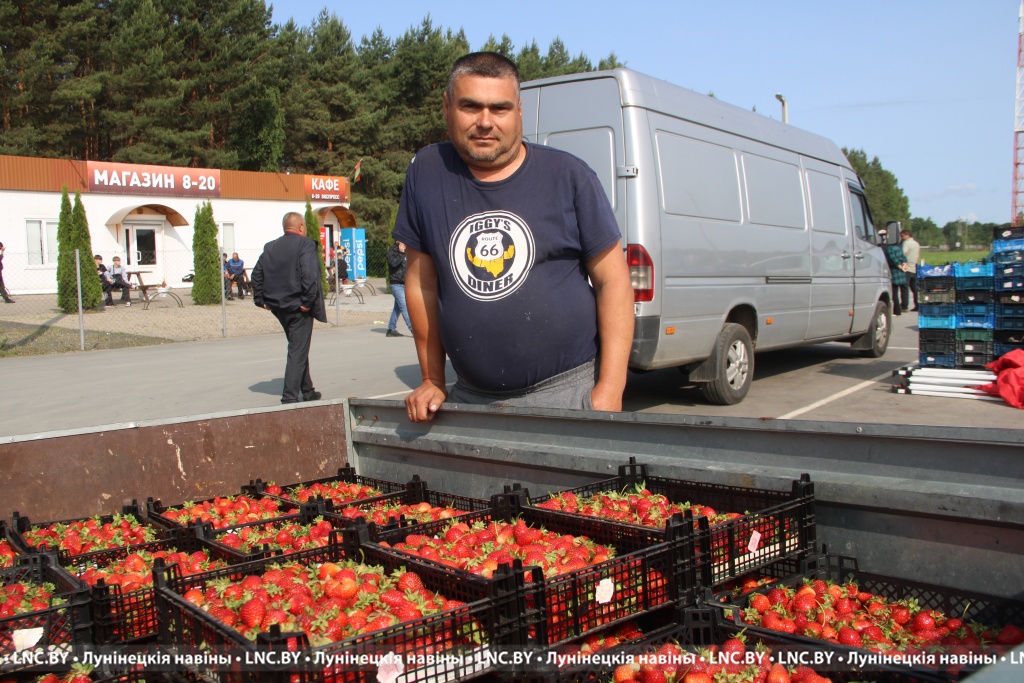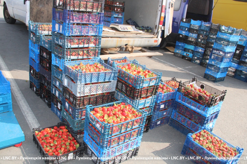 Дварэцкі рынак, як заўсёды, сустракае непаўторным водарам і бясконцай мітуснёй. Але ажыятажу не назіраецца. Каля ўваходу пра высокі попыт сведчыць маленькі аўкцыён каля аўтамабіляў з прывезенай ягадай – кожны жадаючы глядзіць на тавар і агучвае свой кошт.
