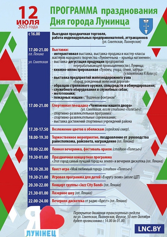 В субботу, 12 июля, Лунинец отметит свой день рождения. Ко Дню города организаторы подготовили интересную программу.