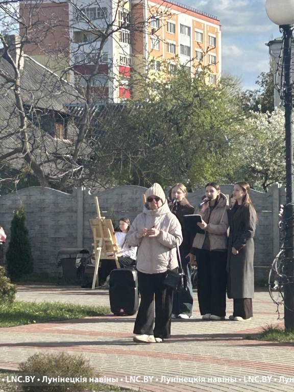 В пятницу, 24 апреля, очередной подарок под открытым небом всем сделали воспитанники и педагоги ДШИ Лунинца. Учащиеся художественного отделения детской школы искусств создали творческую площадку напротив учреждения образования, а вокалисты школы порадовали всех своим выступлением.