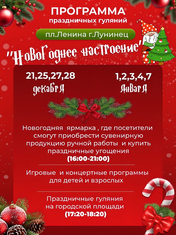 На городской площади Лунинца после открытия главной новогодней елки города 20 декабря — будут проводиться новогодние гулянья!