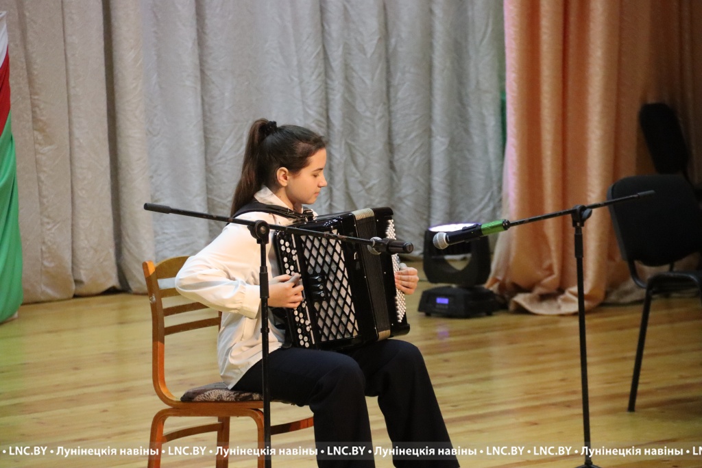 Воспитанники детской школы искусств Лунинца продемонстрировали вокальные данные, а также мастерство игры на баяне, фортепиано, цимбалах и домре. Никого не оставило равнодушным и выступление заслуженного коллектива Республики Беларусь образцового ансамбля «Концертино», виртуозные скрипачи которого сорвали бурные аплодисменты. Не менее замечательным было выступление и представительницы Полесского сельского Дома культуры.