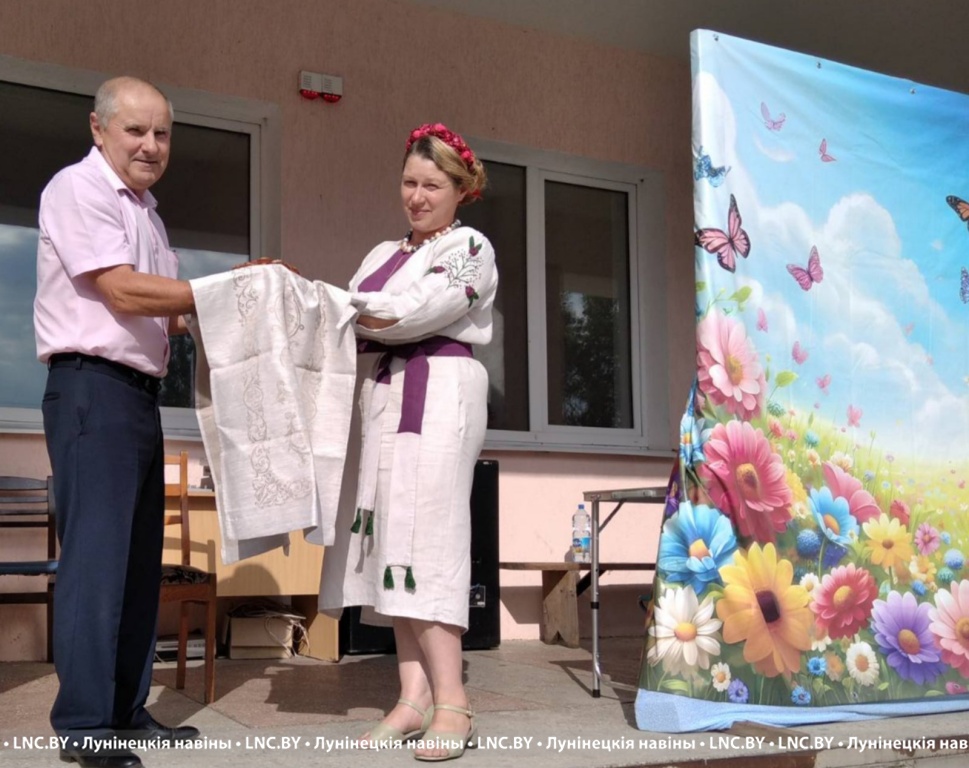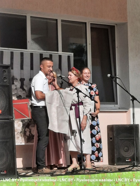 Хлебам-соллю сустракалі гаспадары дарагіх гасцей і частавалі ўсіх прысутных. Свае віншаванні адрасавалі старшыня Лунінскага сельвыканкама Аляксандр Якавец і дырэктар СУП "Агра Лабчанскае" Мікалай Ляўданскі.