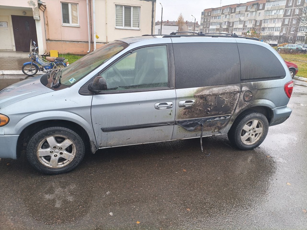 В результате пожара от огня пострадали 2 автомобиля: лобовое стекло, моторный отсек, лакокрасочное покрытие в автомобиле Volkswagen «GOLF Plus», салон и лакокрасочное покрытие в автомобиле Dodge «Caravan» 2004 г.в., который в момент возникновения пожара был припаркован рядом.