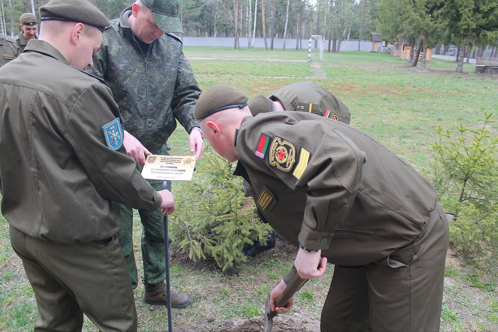 По традиции в полку посадили памятную ёлочку в честь увольнения военнослужащих в запас.