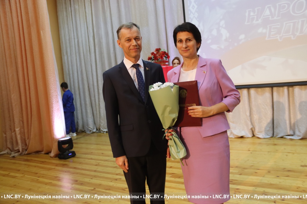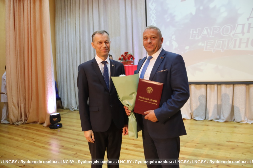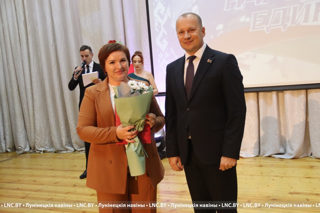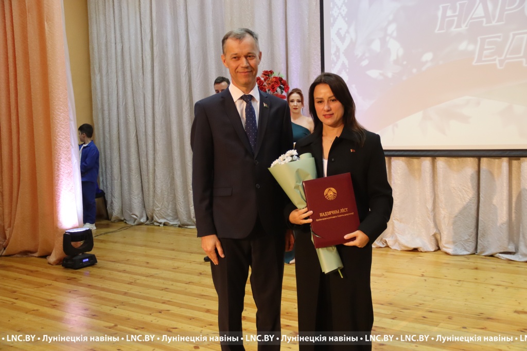 Председатель районного исполнительного комитета Александр Савина и лидер депутатского корпуса района Владимир Ковалевич поздравили участников мероприятия с Днем народного единства и вручили награды.