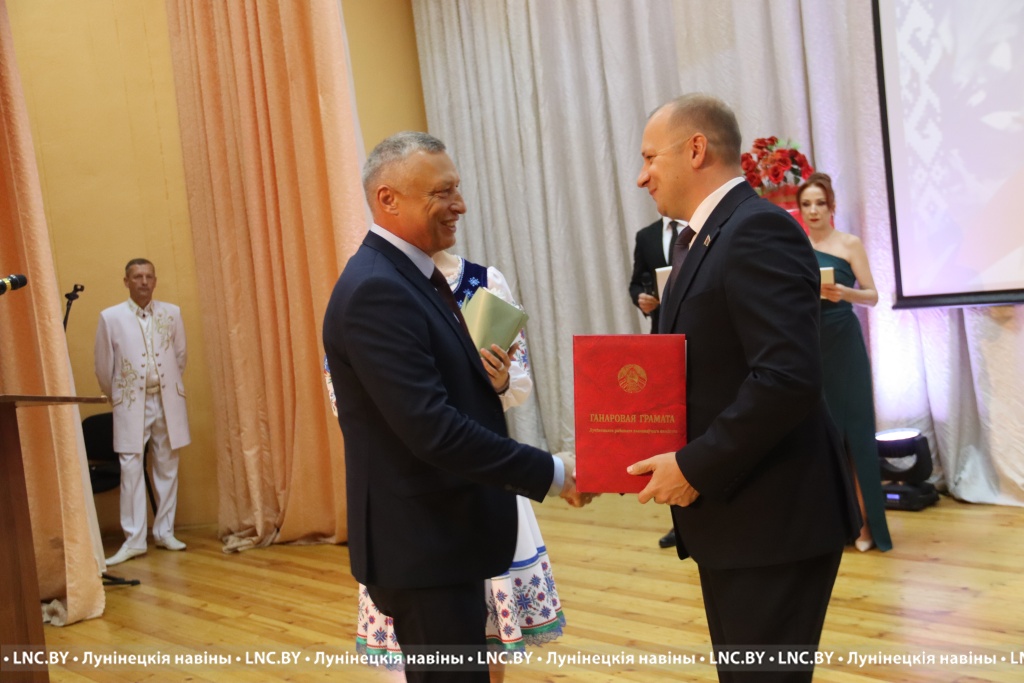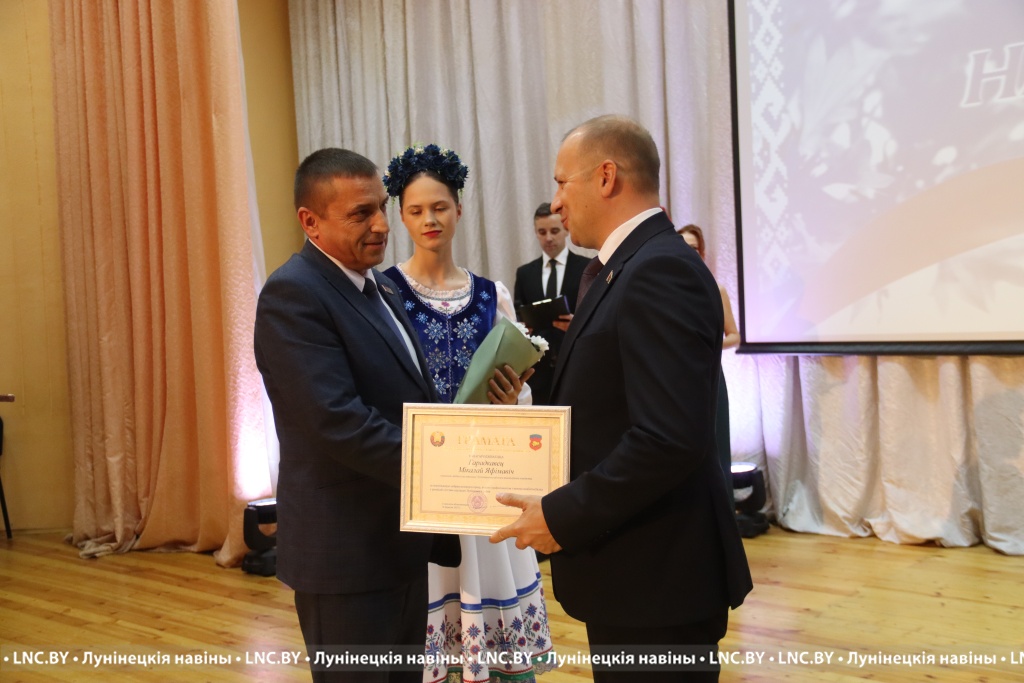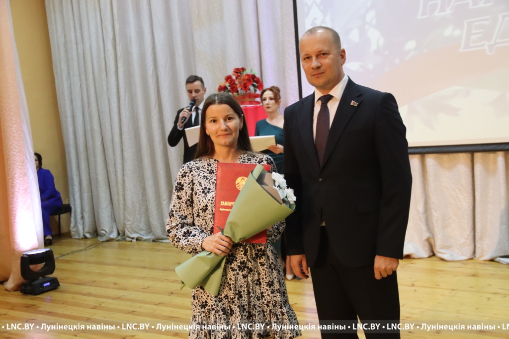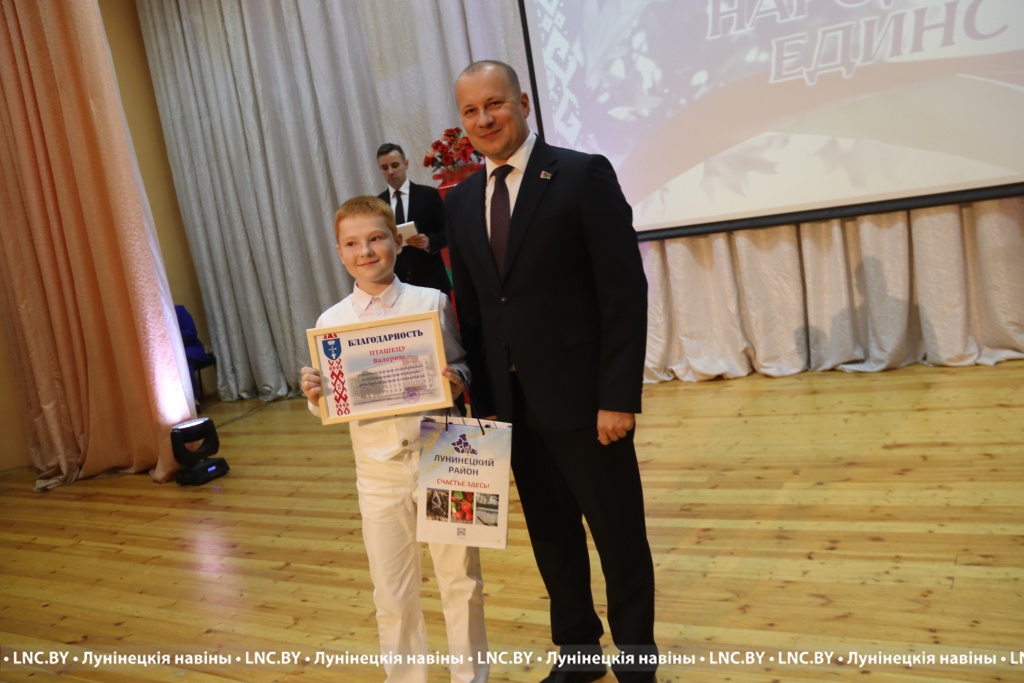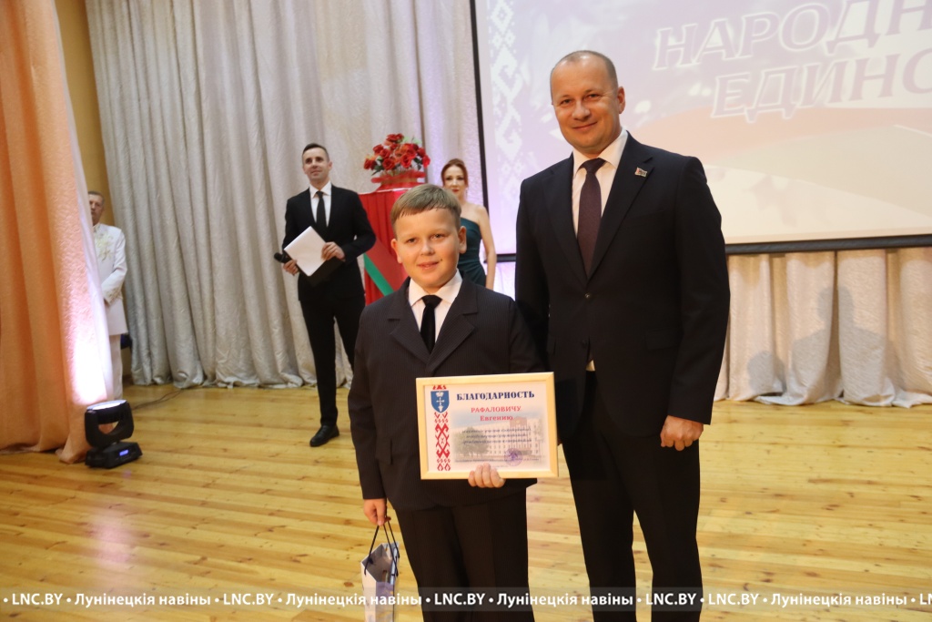 Председатель районного исполнительного комитета Александр Савина и лидер депутатского корпуса района Владимир Ковалевич поздравили участников мероприятия с Днем народного единства и вручили награды.