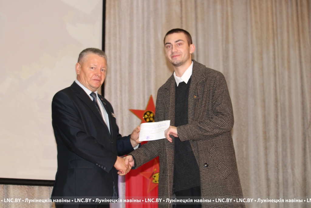 По доброй традиции сказать землякам напутственные слова и вручить повестки пришли почетные гости: заместитель председателя Лунинецкого районного исполнительного комитета Вадим Заруба, заместитель военного комиссара Лунинецкого и Ганцевичского районов Дмитрий Липский, руководитель первичной организации ветеранов-пограничников Сергей Сойко и председатель районной организации ОО «Белорусский союз ветеранов войны в Афганистане» Николай Ковалец.