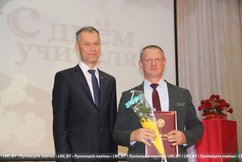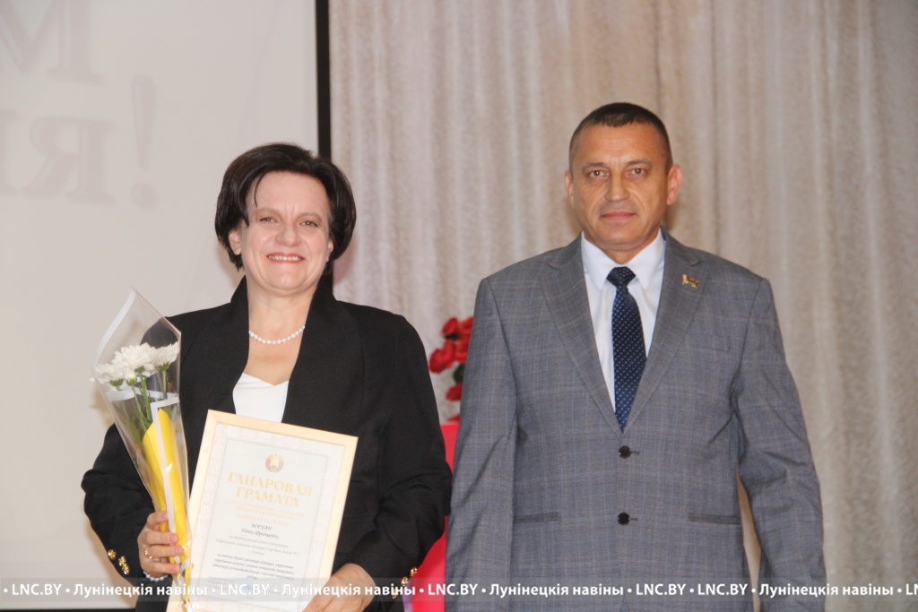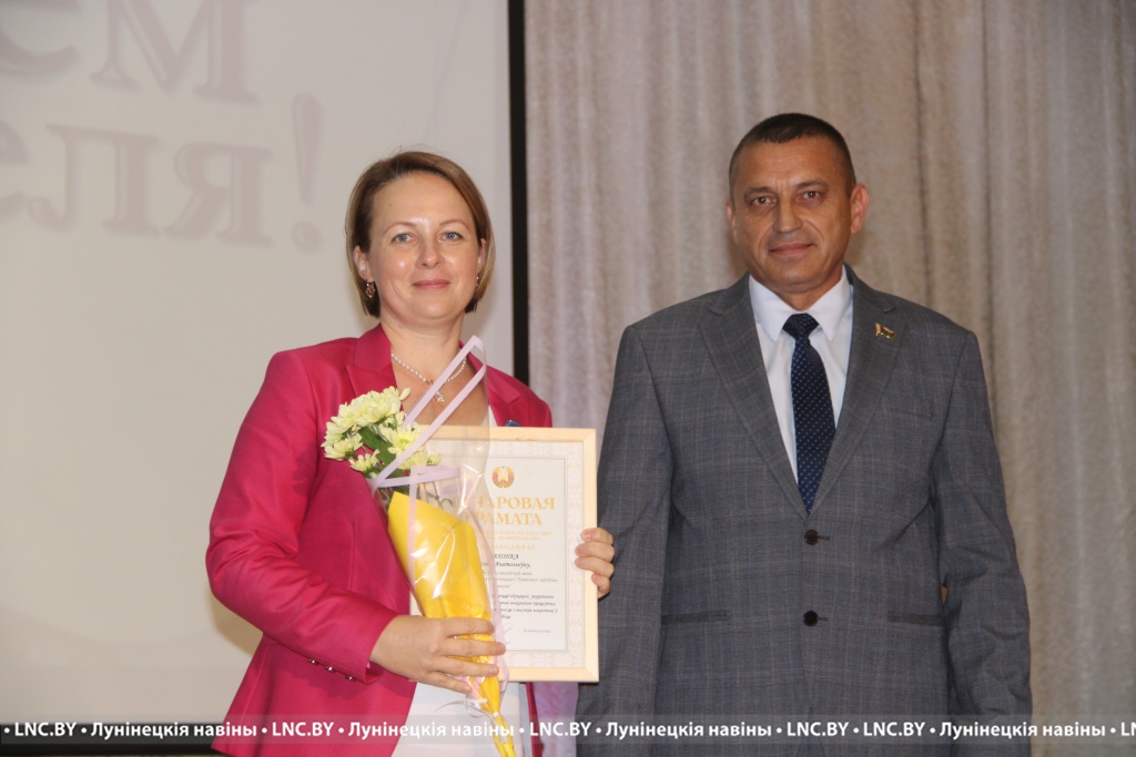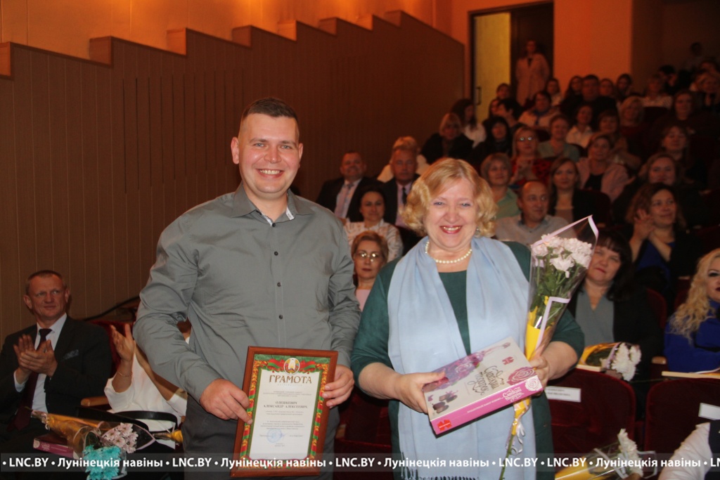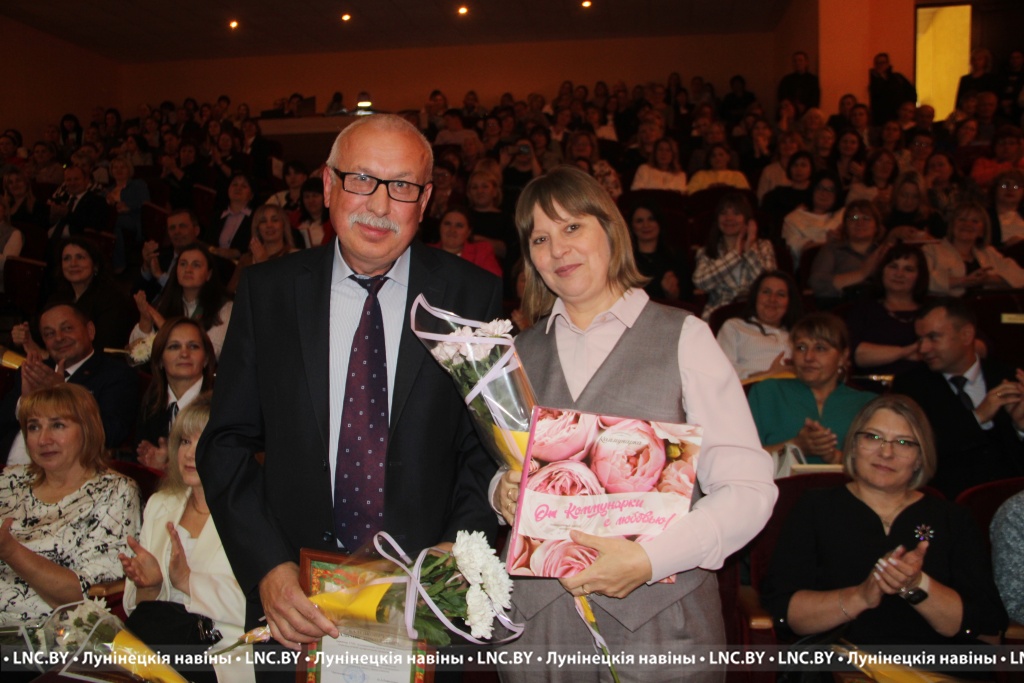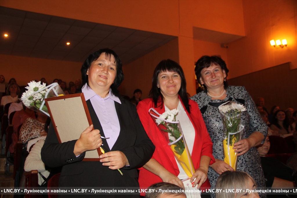 Заслуженные награды Александр Иванович вручил педагогам, внесшим огромный вклад в воспитание и образование не одного поколения наших земляков. Самые теплые слова собравшимся адресовал и председатель районного Совета депутатов Владимир Ковалевич, отметив высокий профессионализм тех, кто «сеет доброе, разумное, вечное» 24 на 7. С приятной миссией на сцене побывали также начальник отдела по образованию райисполкома Николай Городковец, лидер райкома отраслевого профсаюза Нелли Рафалович и председатель районной организации РОО «Белая Русь» Раиса Мозырчук. Очень трогательным оказался момент, когда Нелли Анатольевна называла имена коллег, представляющих семейные династии. Вот уж правда: профессию можно передать по наследству!