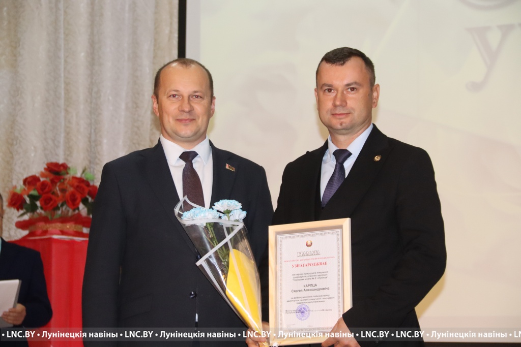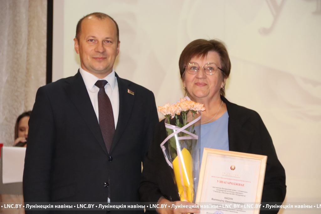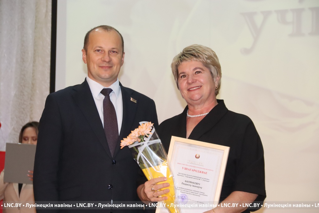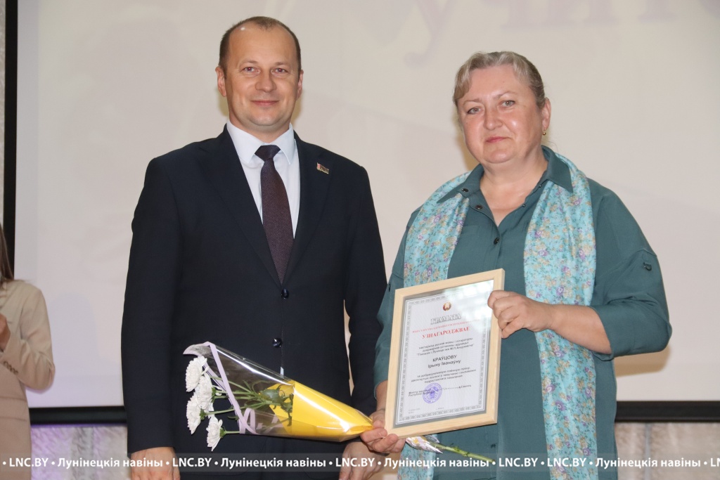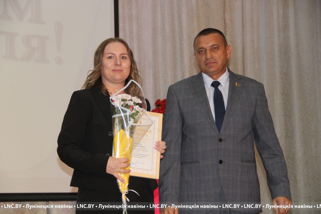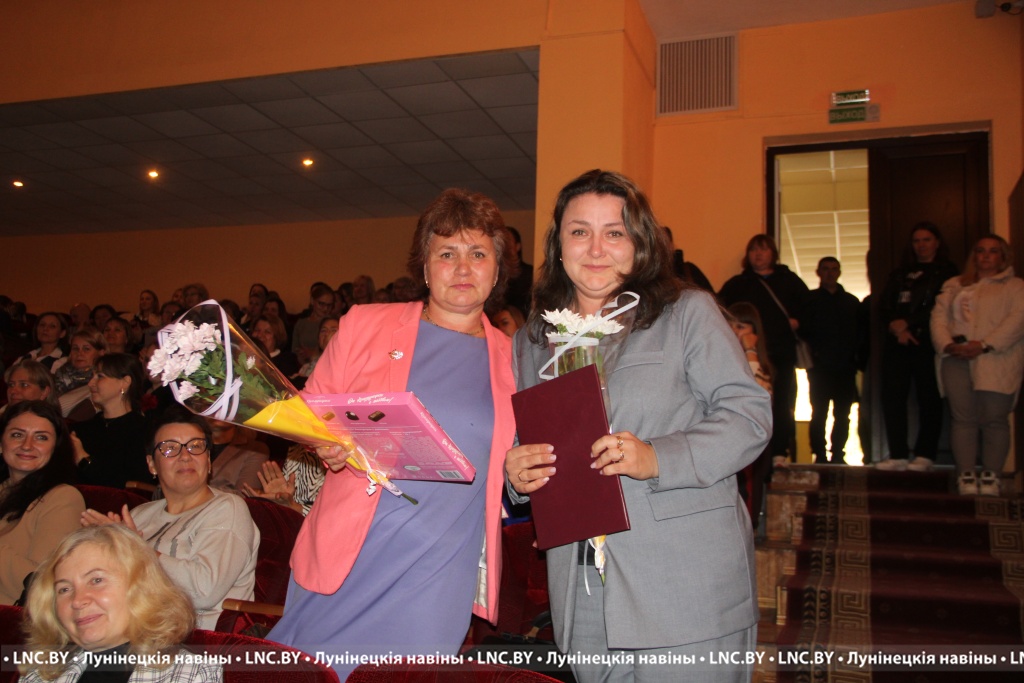 Заслуженные награды Александр Иванович вручил педагогам, внесшим огромный вклад в воспитание и образование не одного поколения наших земляков. Самые теплые слова собравшимся адресовал и председатель районного Совета депутатов Владимир Ковалевич, отметив высокий профессионализм тех, кто «сеет доброе, разумное, вечное» 24 на 7. С приятной миссией на сцене побывали также начальник отдела по образованию райисполкома Николай Городковец, лидер райкома отраслевого профсаюза Нелли Рафалович и председатель районной организации РОО «Белая Русь» Раиса Мозырчук. Очень трогательным оказался момент, когда Нелли Анатольевна называла имена коллег, представляющих семейные династии. Вот уж правда: профессию можно передать по наследству!