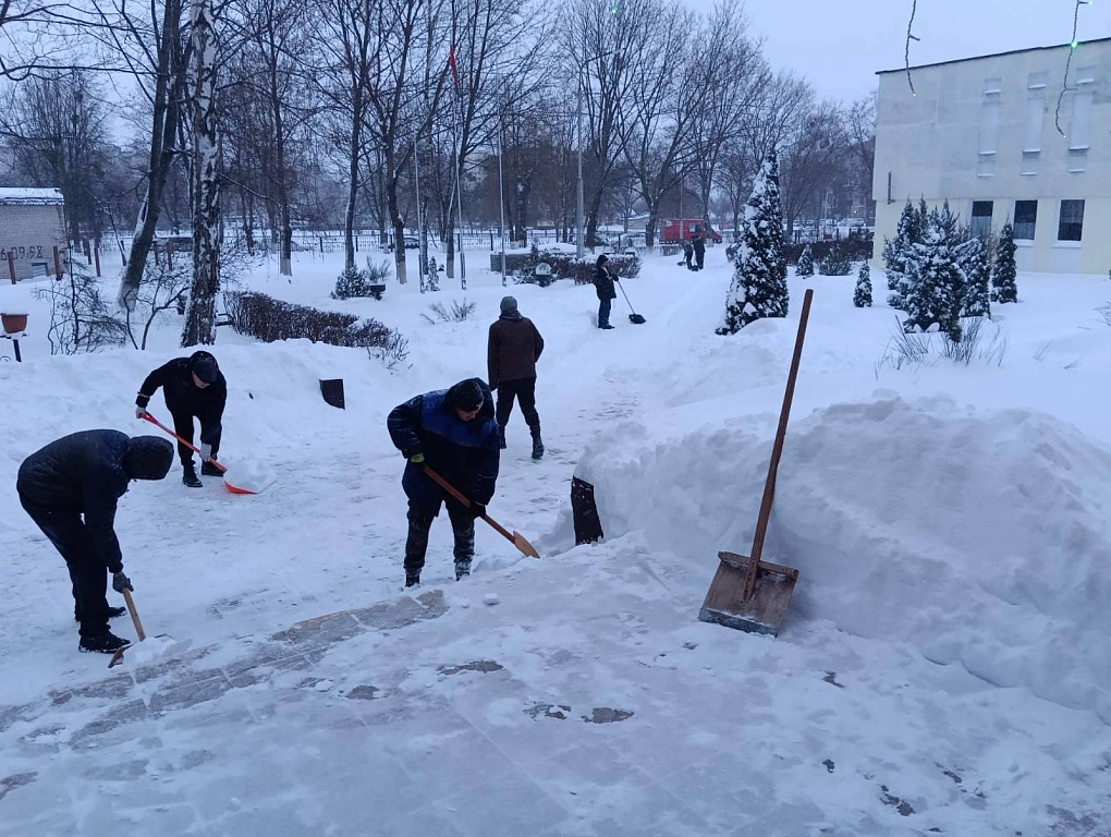 Дружно взялись за расчистку снега работники колледжа в Лунинце