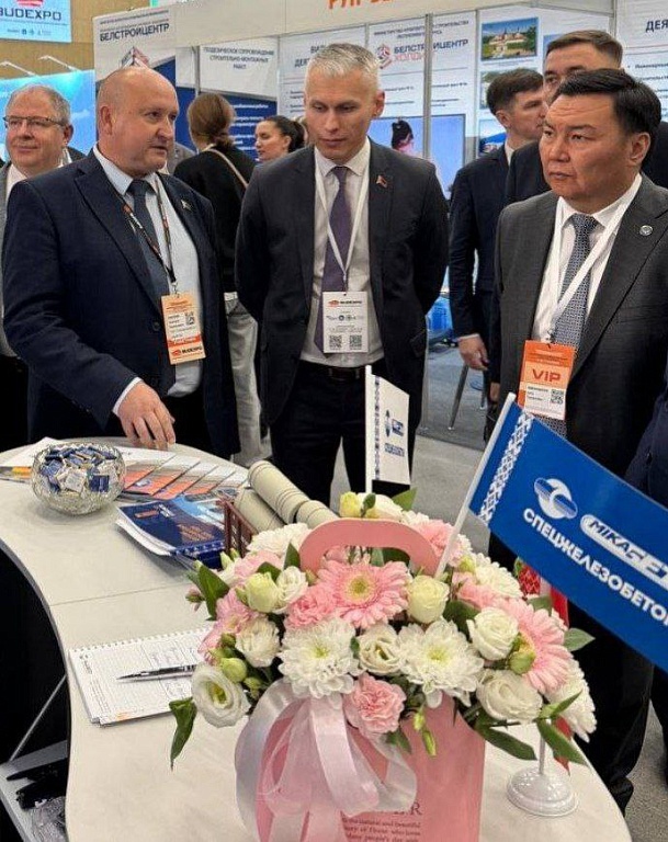 Активно налаживаются партнёрские контакты, руководитель ОАО "Спецжелезобетон" Анатолий Насеня на стенде предприятия принял делегацию из Республики Кыргызстан вместе с первым заместителем Министра архитектуры и строительства Республики Беларусь Владимиром Наумовичем