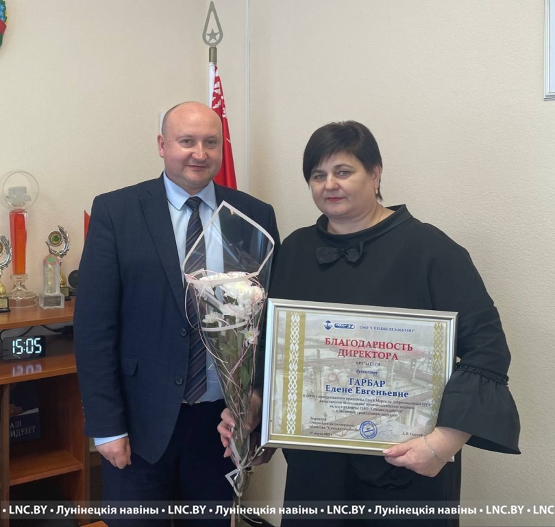 Директор ОАО "Спецжелезобетон" Анатолий Насеня и представители РОО "Белая Русь" предприятия поздравили женщин с 8 марта.
