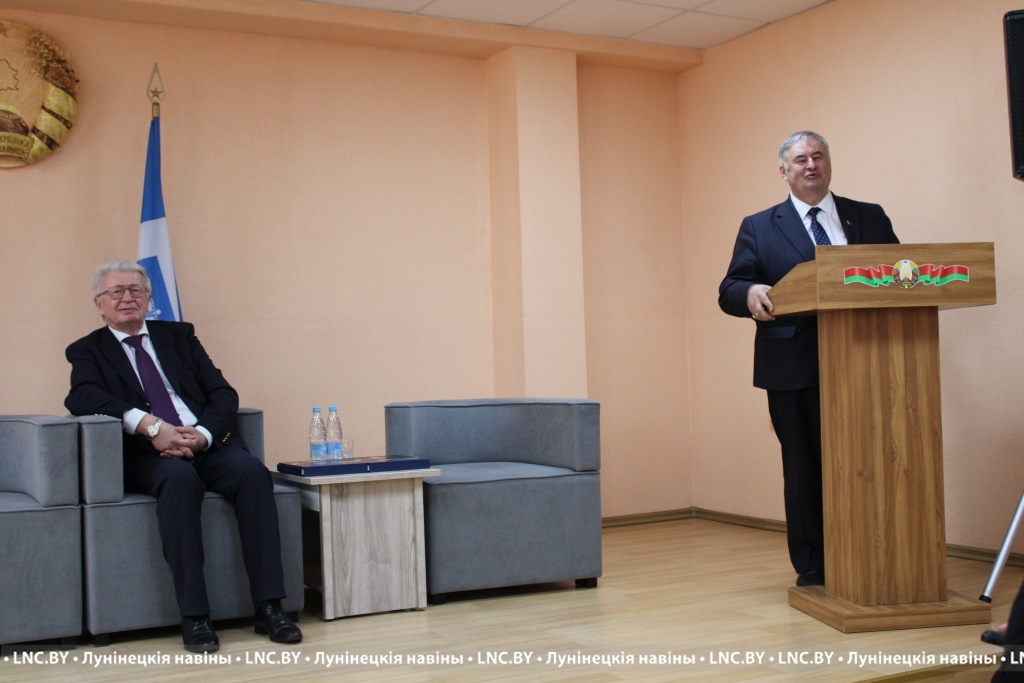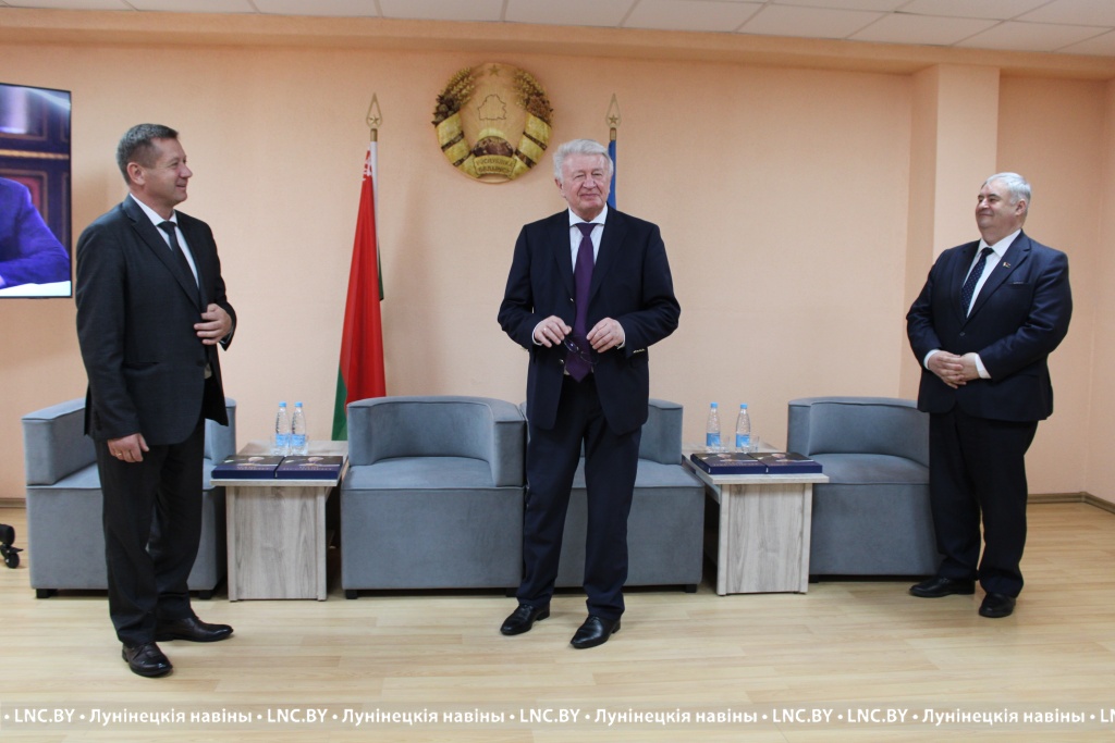 В актовом зале ОАО «Лунинецкий молочный завод» прошла презентация книги «Наш Президент», в которой приняли участие почетные гости, представители авторского коллектива – профессор, доктор педагогических наук Александр Радьков и председатель Союза писателей Беларуси, руководитель УП «Издательство Беларусь» Александр Карлюкевич.