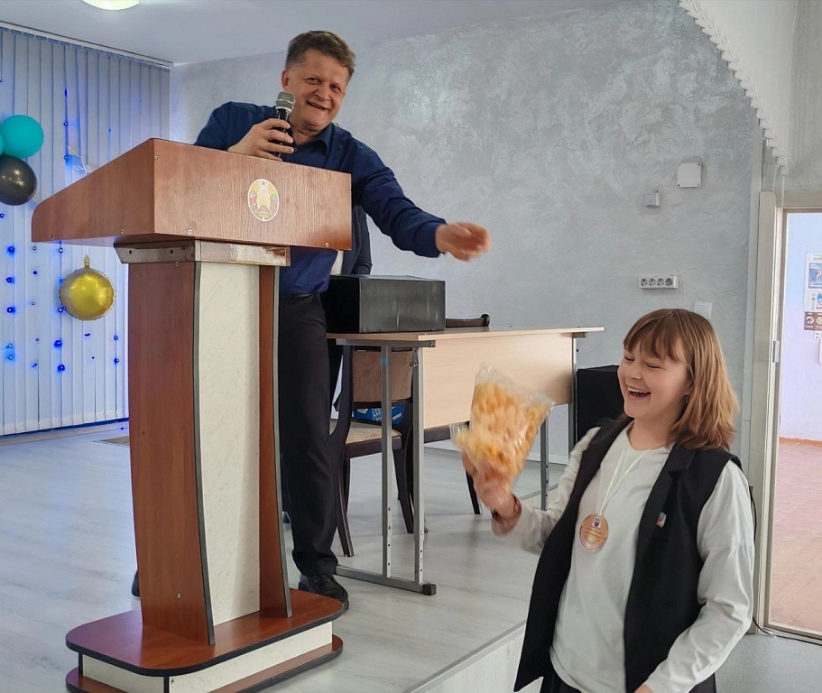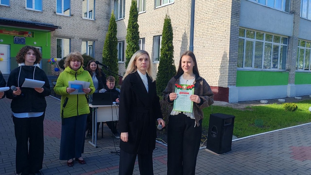 Праздничный день начался с торжественной линейки, на которой были вручены грамоты классам в номинациях "Лучший класс года", "Самый экологичный класс", "Самый здоровый класс". Затем прошли мероприятия "Вместе весело шагать" для учащихся 1-4 классов, "Аукцион уникальных вещей" для 5-11 классов, спортивная игра "Капитошка", интеллектуальный конкурс "Ученик года", победителем которого стал Гребень Никита, учащийся 11 класса.