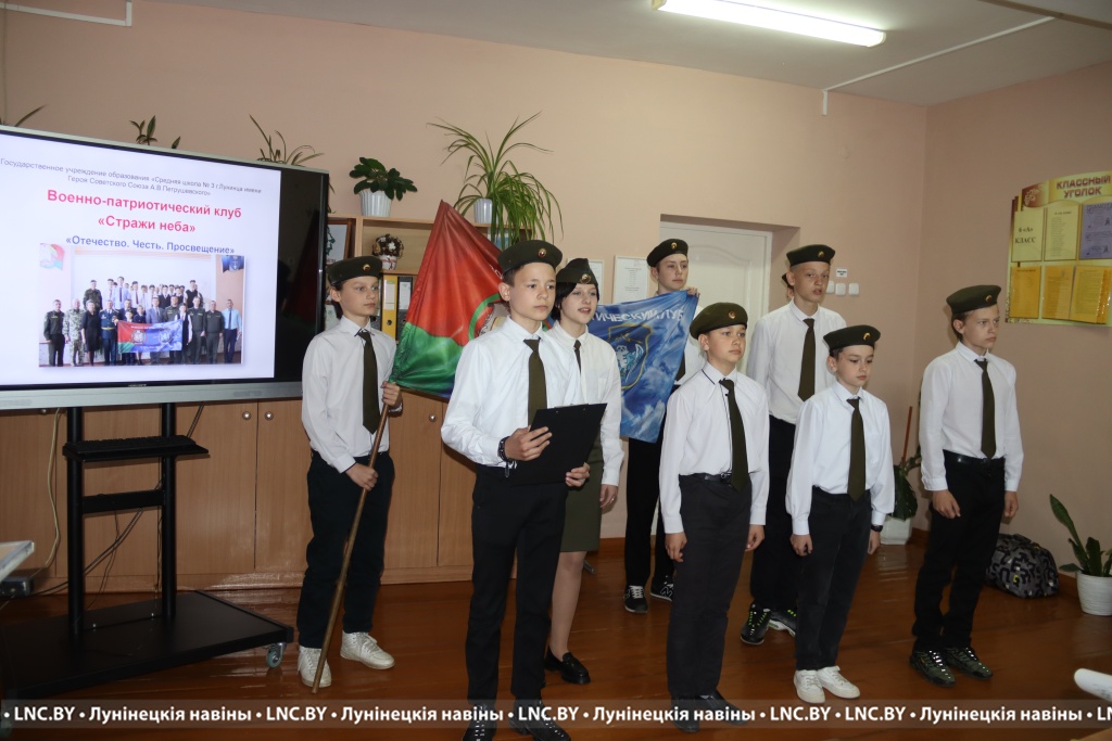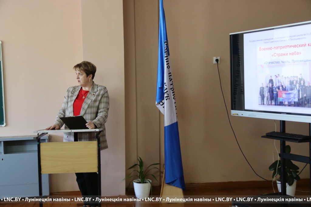 Участников мероприятия в СШ №4 г. Лунинца поприветствовал начальник отдела по образованию райисполкома Николай Городковец, который рассказал об образовательном процессе в учебных заведениях Лунинетчины. Здесь состоялась презентация военно-патриотических клубов «Аэродромшик» СШ №4 г. Лунинца и «Стражи неба» СШ №3 г. Лунинца имени Героя Советского Союза А. В. Петрушевского.