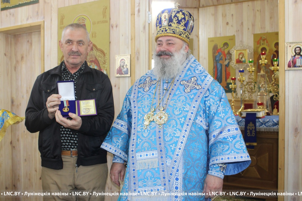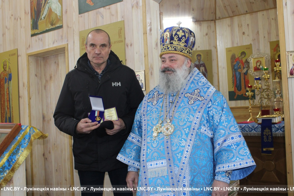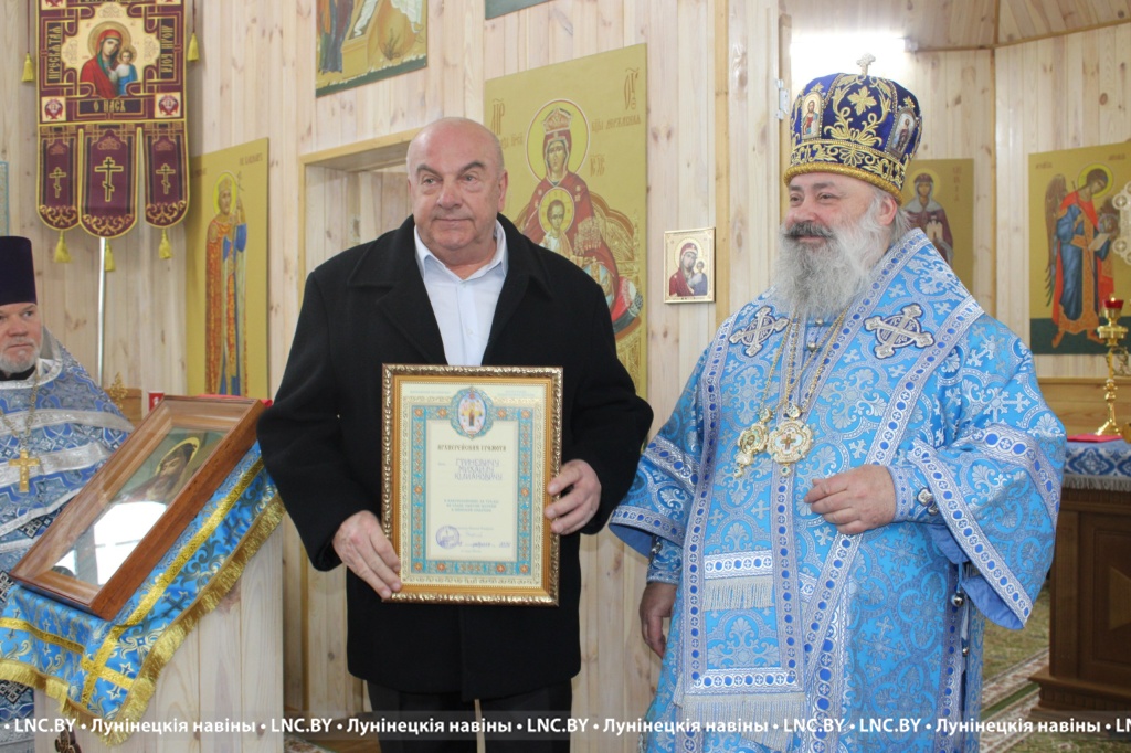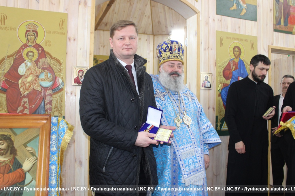 После проповеди и теплых назидательных слов наступил торжественный момент – награждение тех, кто помог появиться этому храму. Было вручено почти три десятка медалей и архиерейских грамот. Всего за неполных три года на улице Первомайской в Микашевичах вырос небольшой православный храм. Пусть он пока временный, но уже почти два года здесь каждый день звучат молитвы, совершаются таинства и обряды.