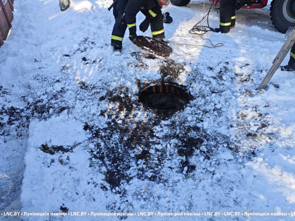 Спасатели Пожарной аварийно-спасательной части №1 Лунинецкого РОЧС выехали на место вызова и, открыв люк и спустившись вниз, помогли напуганному животному выбраться.