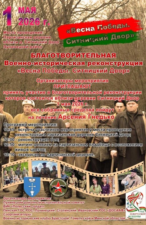 В преддверии великого праздника – Дня Победы – жителей и гостей Лунинетчины приглашают на уникальное событие. В Ситницком Дворе состоится благотворительная военно-историческая реконструкция «Весна Победы. Ситницкий Двор».