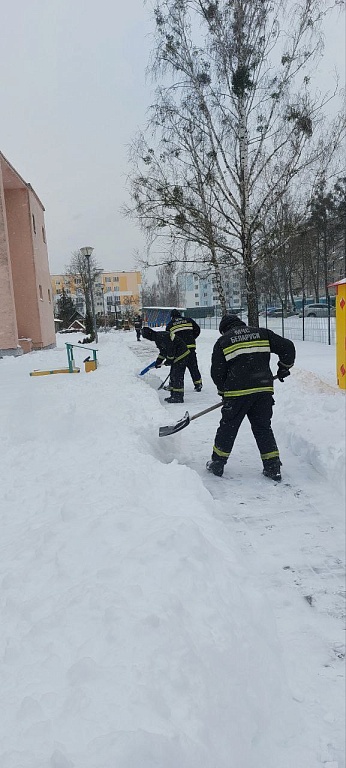 Спасатели Лунинецкой и Микашевичской Пожарных аварийно-спасательных частей оказали помощь в уборке снега на территории детского сада №11 Лунинца и детского сада №1 Микашевичей.