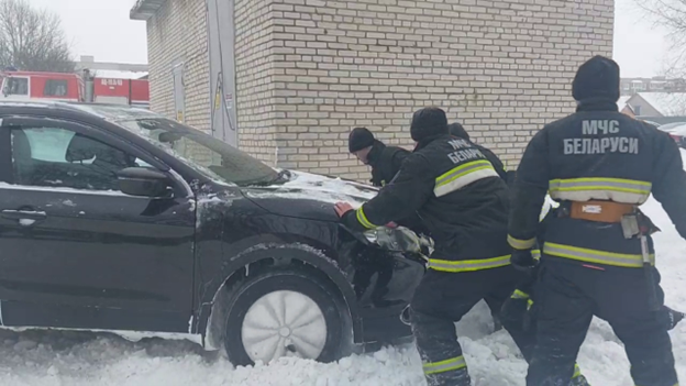 Спасатели помогают на расчистке снега в Лунинецком районе