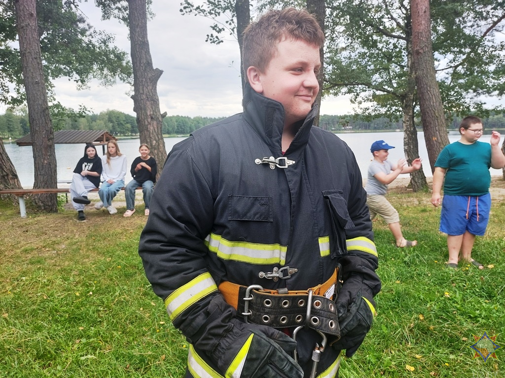 Вторая половина «Дня МЧС», проходившая на пляже лагеря, также состояла из теоретической и практической частей. Спасатели продемонстрировали пожарный автомобиль и аварийно-спасательный инструмент, желающие смогли «потушить огонь» из пожарного ствола, примерить боевую одежду и посидеть в кабине автоцистерны. С младшими ребятами на пляже также повторили основные правила безопасного поведения на летних каникулах и разобрали «5 шагов спасения» в случае возникновения пожара в доме.