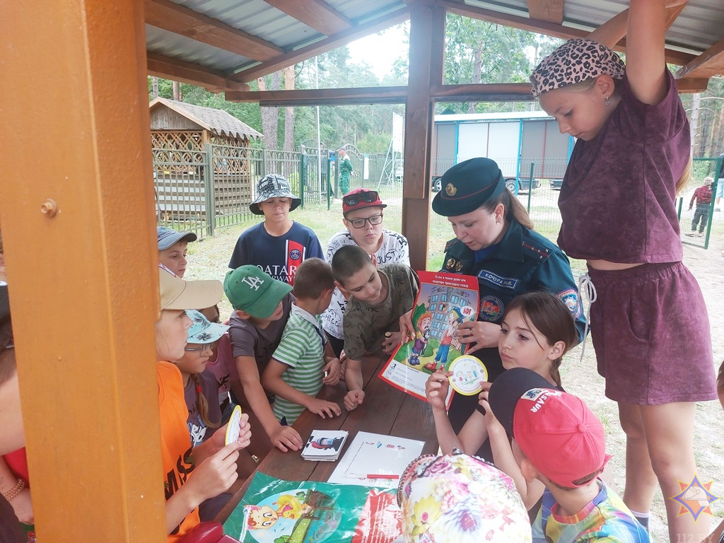 В рамках информационно-пропагандистской акции «Безопасные каникулы» спасатели Лунинецкого районного отдела по чрезвычайным ситуациям посетили ребят из пятой смены детского оздоровительного лагеря «Спутник», подарив им настоящий праздник.