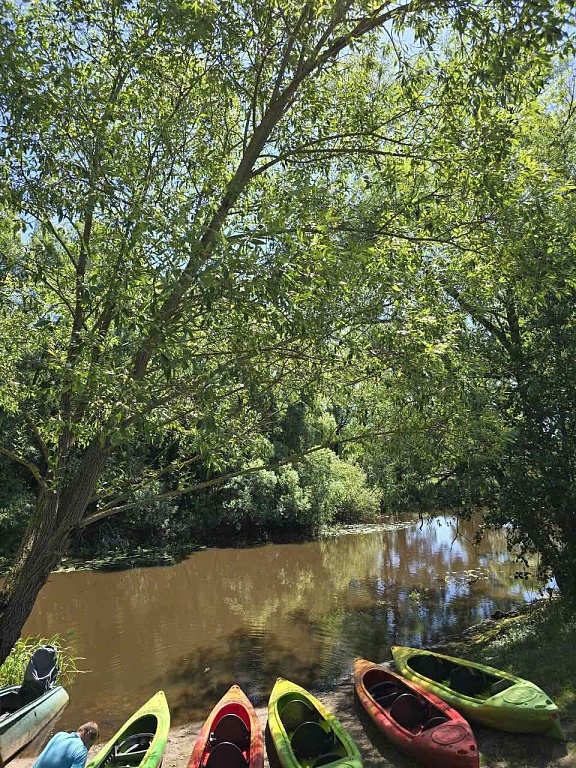 Старт маршрута находился в 5 километрах от агроусадьбы, но работники сельхозорганизации преодолели чуть большее расстояние по реке Смердь. Для поднятия боевого настроения инициировали соревнование за первые призовые места с денежными вознаграждениями. Первая часть маршрута заняла примерно 1 час, после чего участники расположились на небольшой привал с костром. Жареное сало и чай на берегу реки - что может быть лучше?! Завершился сплав уже по реке Припять с заходами в старые русла, что подарило возможность увидеть места во всей красоте и уединенности.