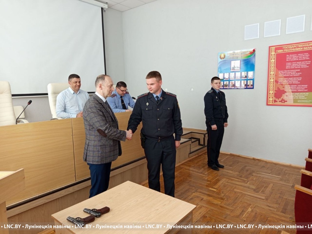24 апреля в актовом зале отдела внутренних дел Лунинецкого райисполкома проведен ритуал вручения табельного оружия молодым сотрудникам.