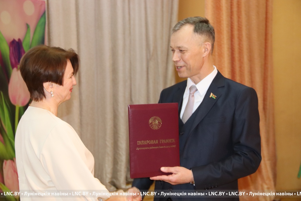 Обращаясь к женщинам, руководитель депутатского корпуса района Владимир Ковалевич подчеркнул, жительницы Лунинетчины отличаются необычайной коммуникабельностью, красотой, позитивом, и пожелал им всегда чувствовать поддержку и надежное плечо мужчин. Под аплодисменты Владимир Михайлович также вручил награды и цветы.