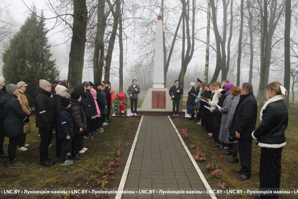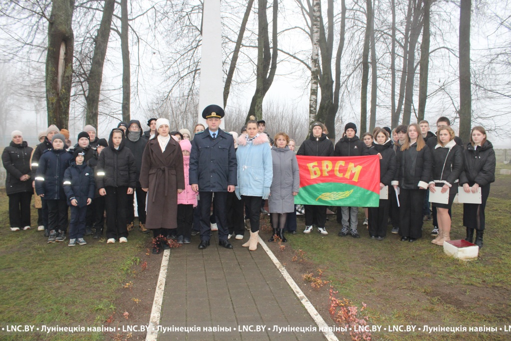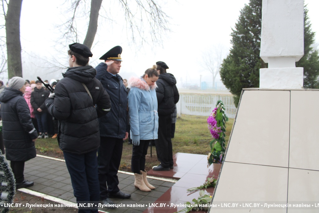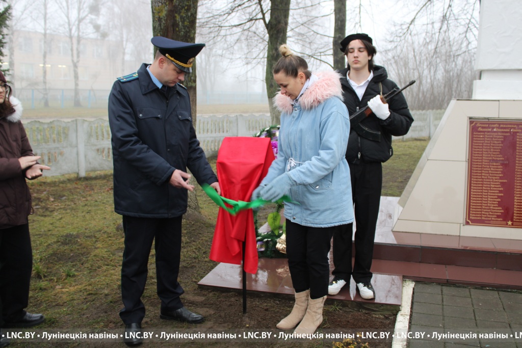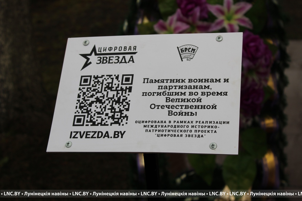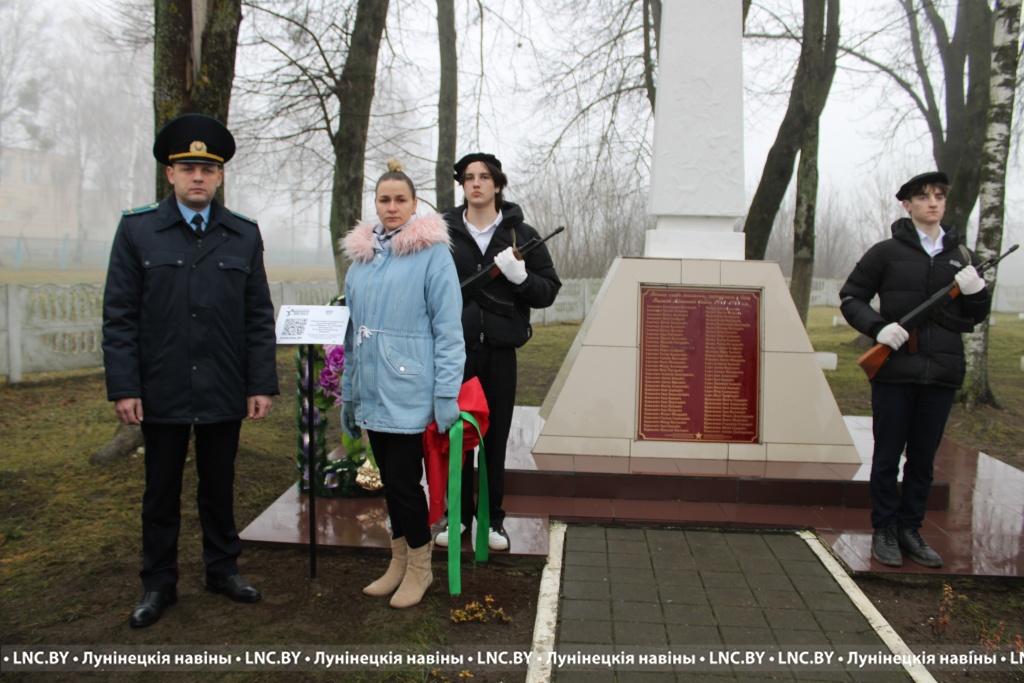 В открытии знаковой таблички c QR-кодом приняли участие прокурор Лунинецкого района Юрий Прокопчук и первый секретарь райкома ОО «БРСМ» Виктория Щур. Также участники митинга возложили к подножию памятника цветы и венки.