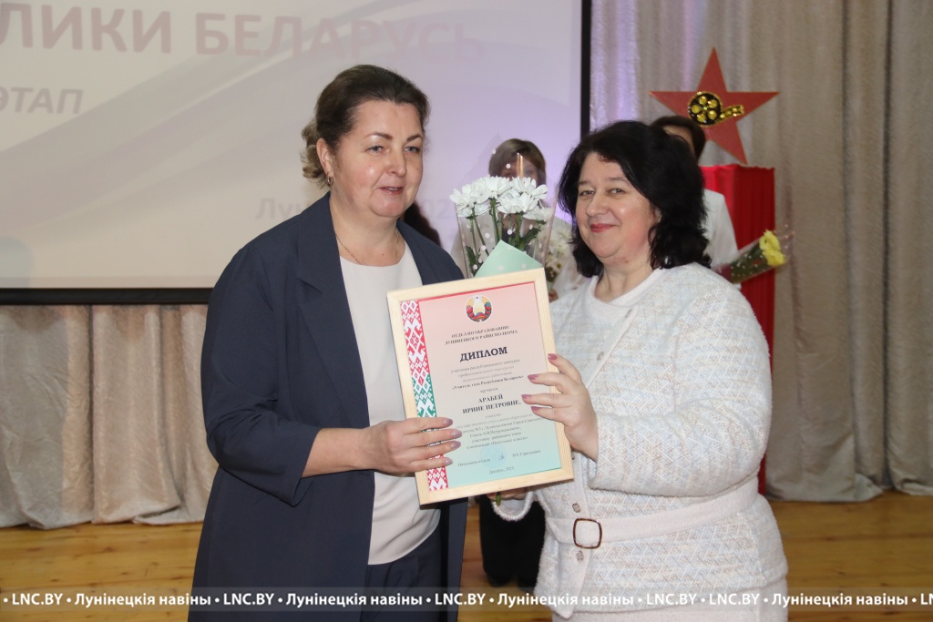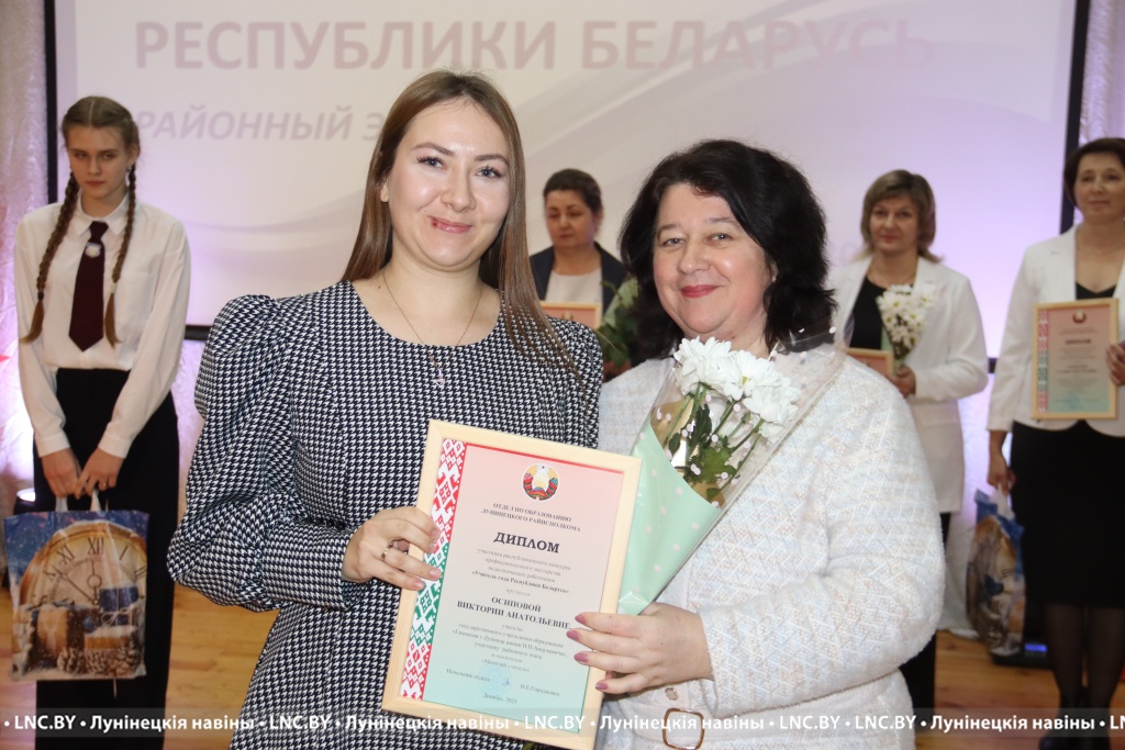 Дипломами отмечены финалисты конкурса. А председатель районной организации Белорусского профсоюза работников образования и науки Нелли Рафалович вручила дипломы участникам второго районного этапа республиканского конкурса профессионального мастерства педагогических работников «Учитель года Республики Беларусь»