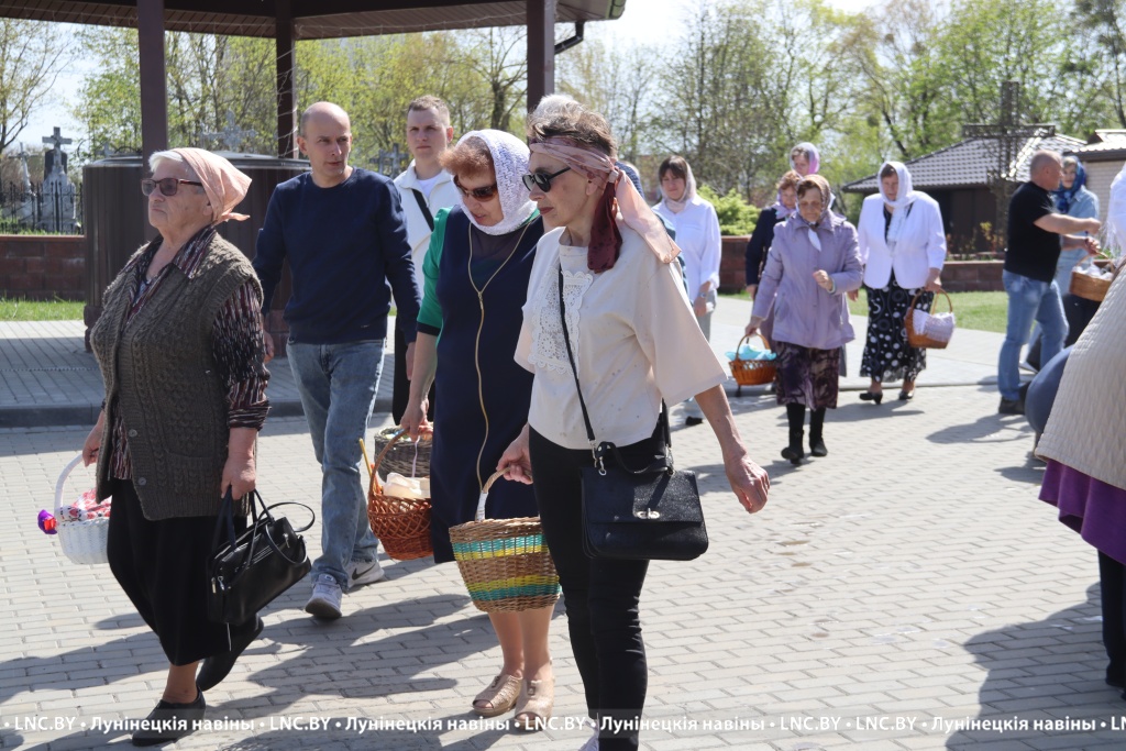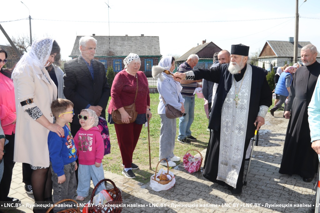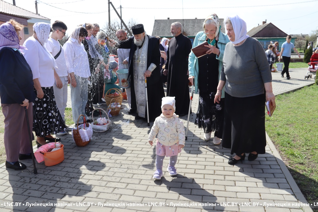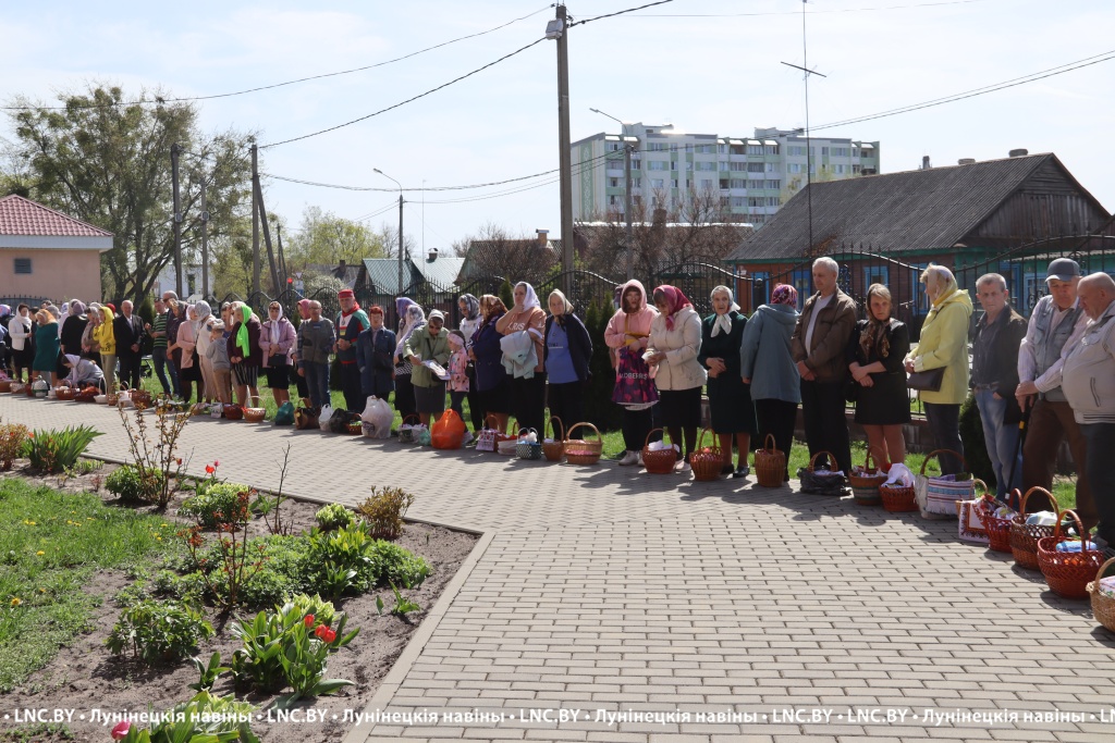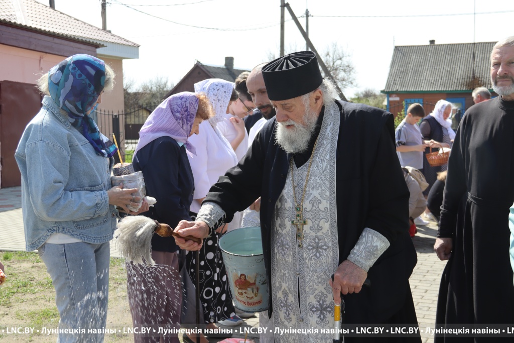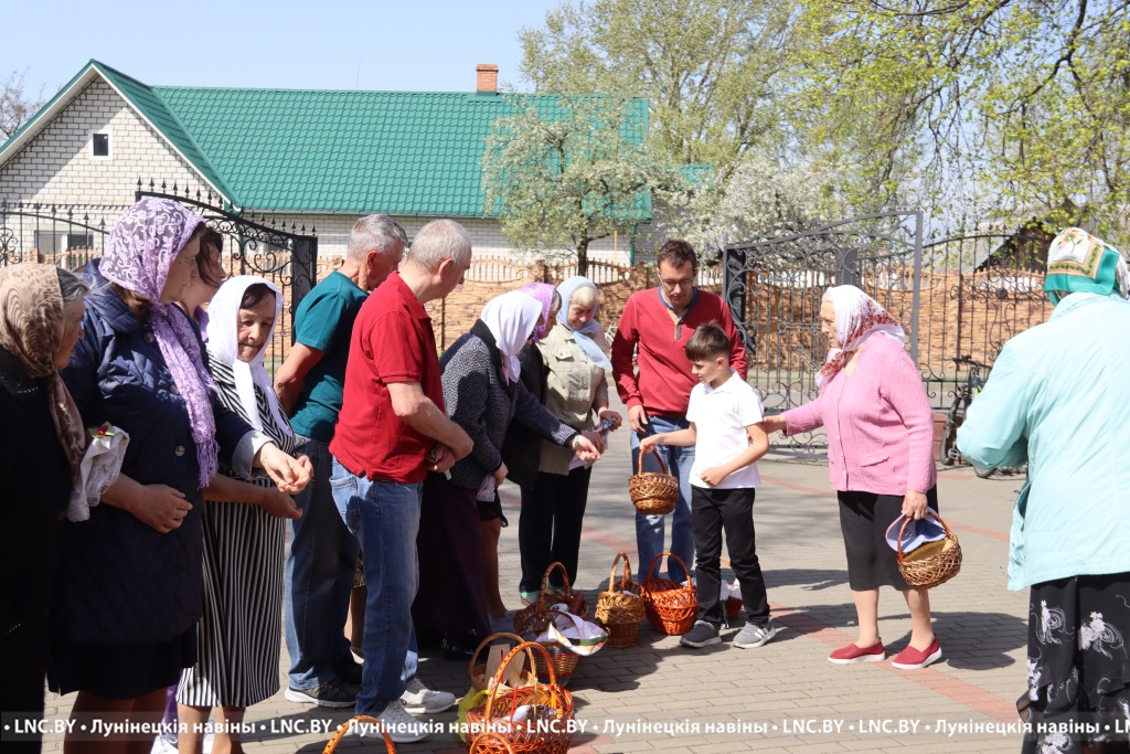 В храмы Лунинецкого района, в том числе и в Крестовоздвиженский Лунинца, идут целыми семьями. После прочтения молитвы, отец Василий окропил приношения святой водой.