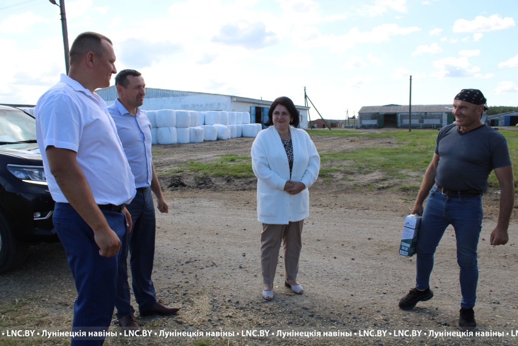 С целью поблагодарить тружеников и пожелать крепкого здоровья, успехов в работе, на полях хозяйства побывали заместитель начальника управления по сельскому хозяйству и продовольствию райисполкома Борис Обровец и председатель райкома профсоюза работников АПК Ольга Ермоленок.