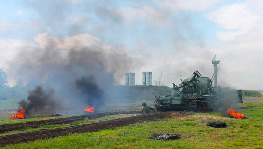 Новобранцы прошли «обкатку танком», в качестве которого был использован бульдозер на артиллерийском тягаче. Выполнение данного упражнения не только закрепляет полученные навыки в рамках тактической подготовки, но и является частью психологической подготовки солдата к условиям реальных боевых действий.