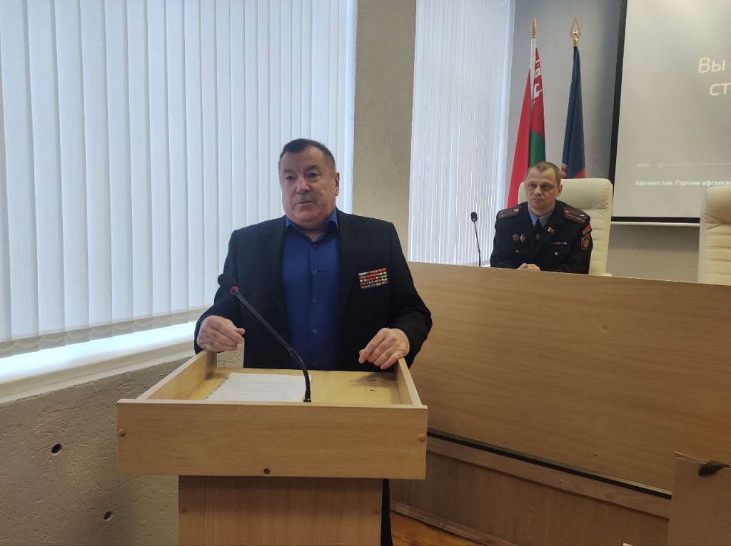 Также заместитель начальника РОВД по идеологической работе и кадровому обеспечению, подполковник милиции Николай Бахуревич напомнил о тех трагических событиях, которые длились 9 лет и 51 день. Его выступление сопровождалось видеосюжетом и было насыщено историческими фактами и личными рассказами, которые помогли всем присутствующим лучше понять тяжесть и сложность тех лет. Участие в таких мероприятиях – это не только дань уважения, но и возможность передать молодому поколению важность патриотизма и памяти о тех, кто выполнял свой интернациональный долг.