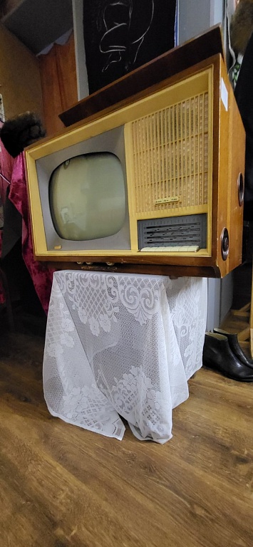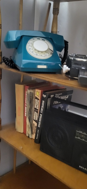Представленные предметы быта, спортивные кубки,телефоны, телевизоры, фотоаппараты и радио приёмники, посуда, одежда и обувь, игрушки и игры, школьные принадлежности, фотографии и сувениры - все сделано в СССР.