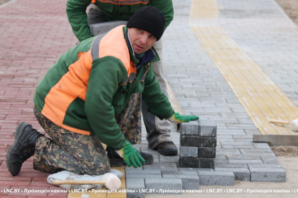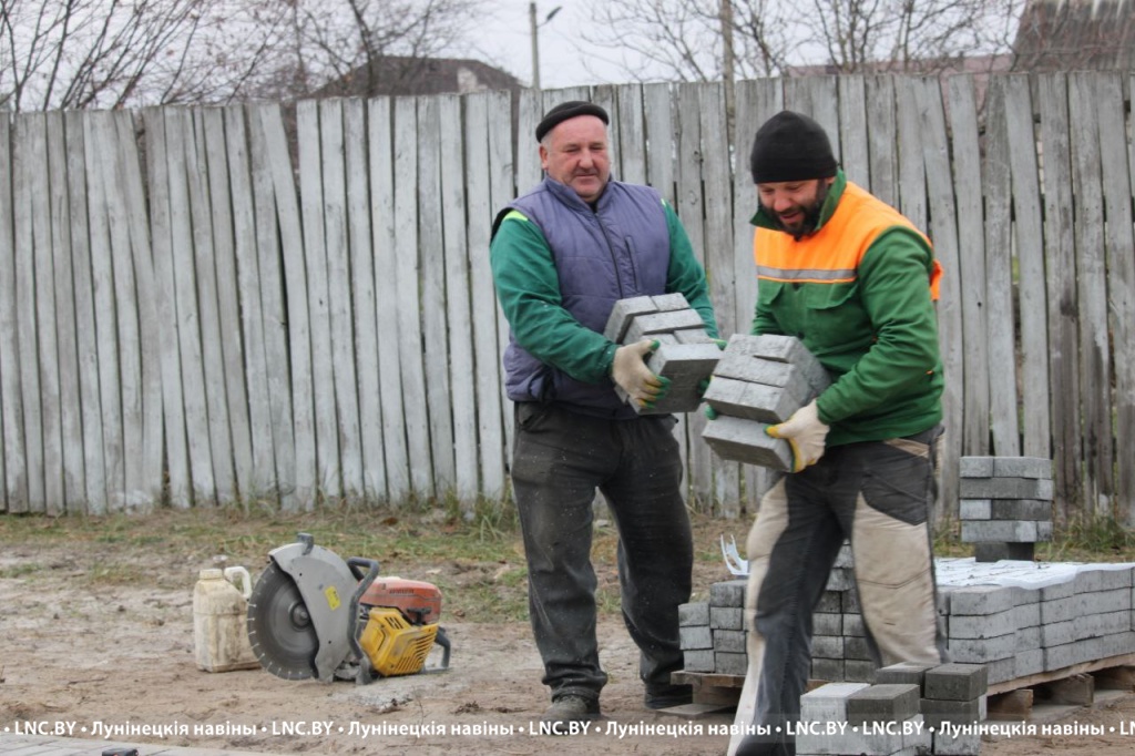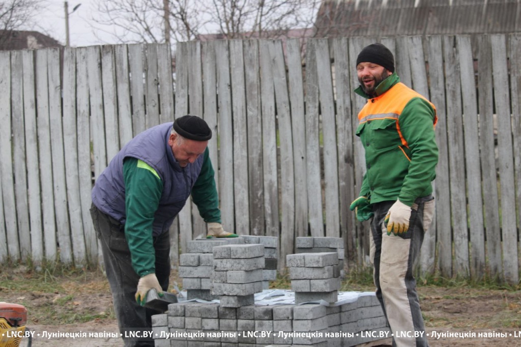 Работники ДРСУ-101 укладывают тротуар по ул. Недведского и асфальтируют ул. Брестскую.