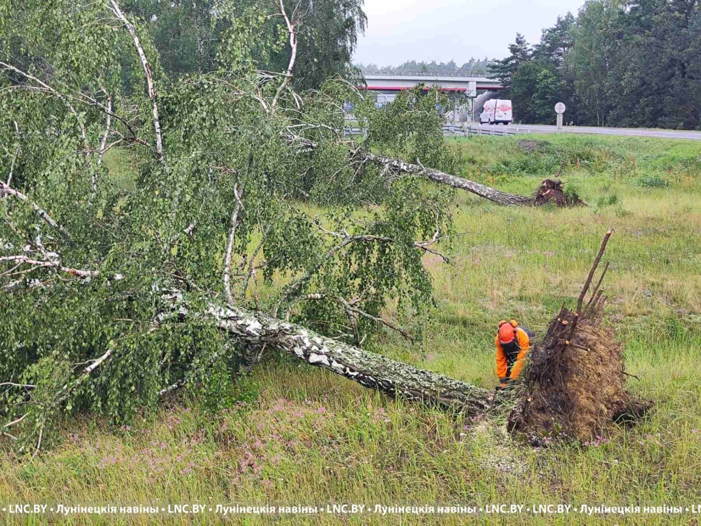Часть деревьев, которые при падении перекрыли две полосы движения автомагистрали, оперативно убрали сотрудники РОЧС.