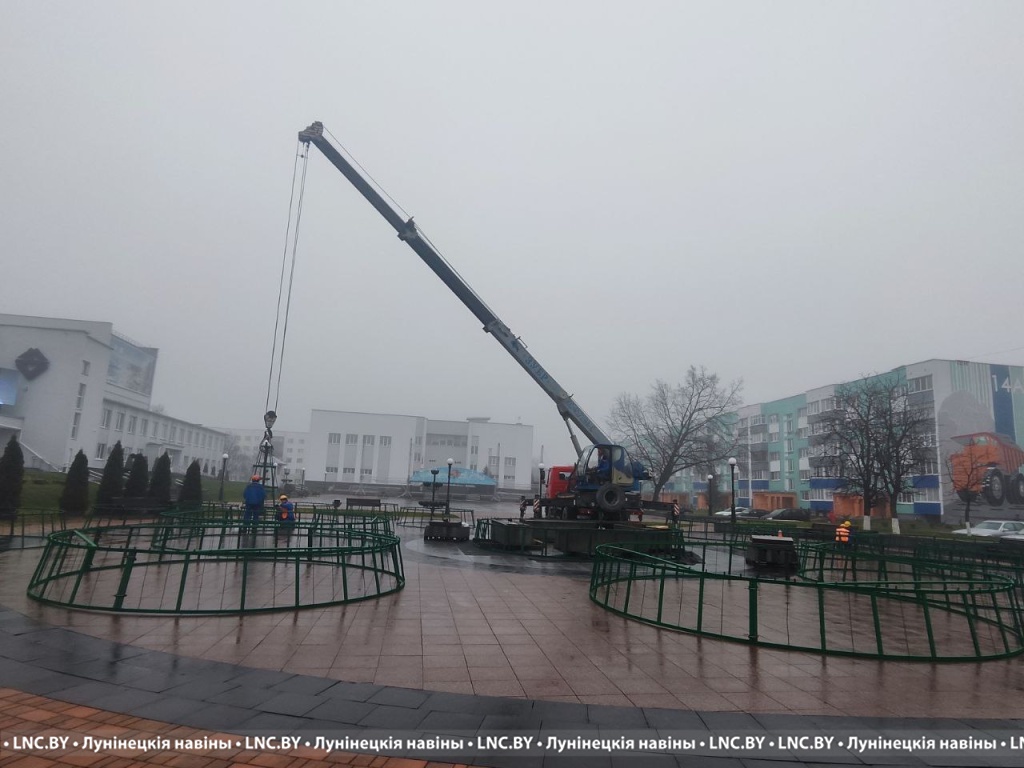 В Микашевичах устанавливают городскую новогоднюю елку
