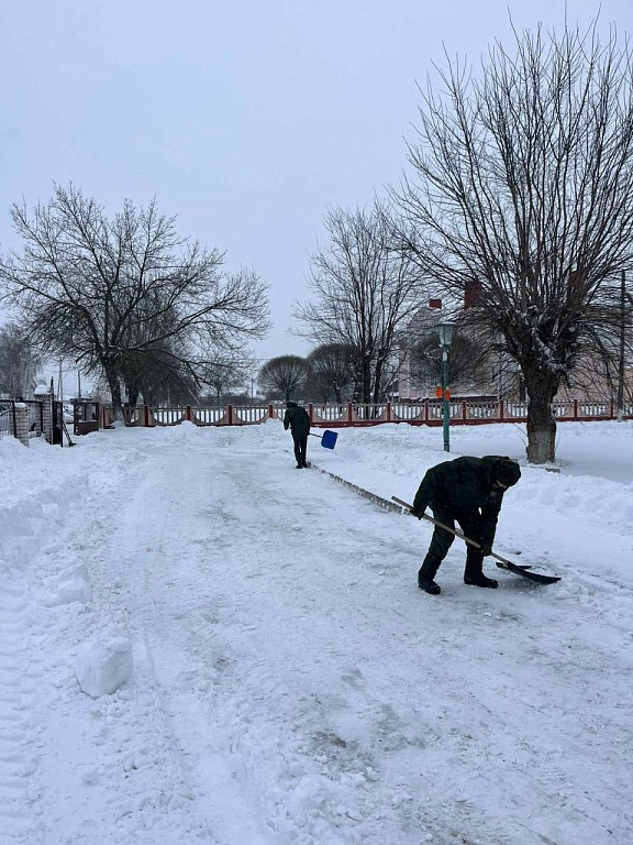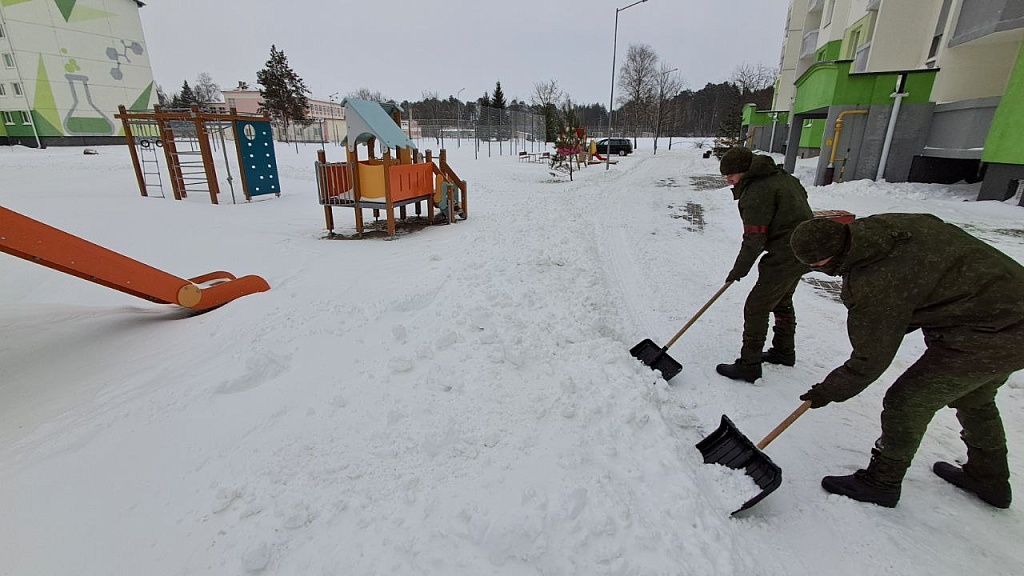 Военнослужащие помогают в расчистке снега в Лунинце