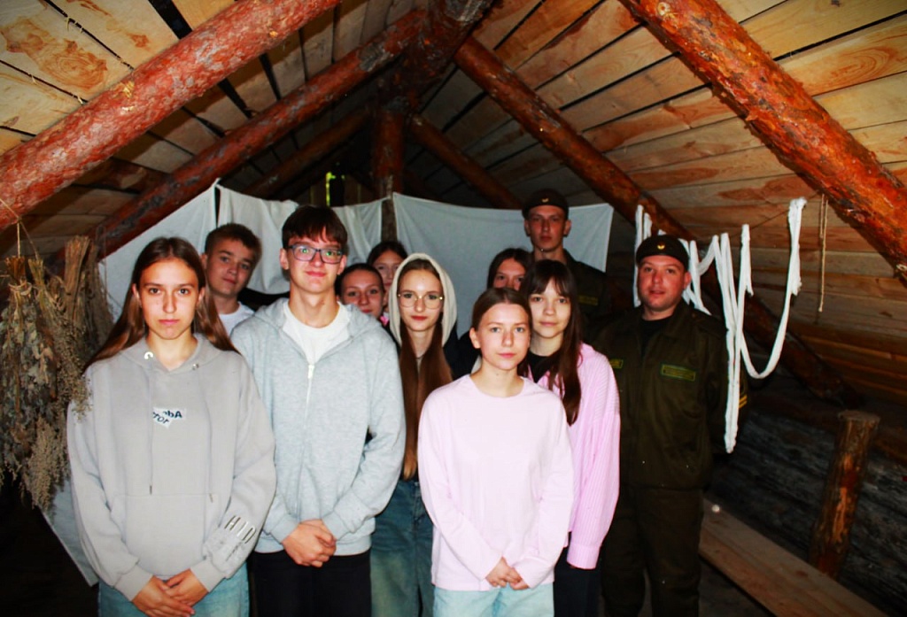 Молодежь посетила реконструкцию партизанской деревни вблизи населенного пункта Ситницкий Двор, где дислоцировались отряды партизанской бригады имени Кирова.