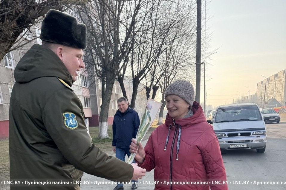 Военнослужащие 2 радиотехнического центра войсковой части 25886 поздравили женщин на улицах Лунинца с 8 марта