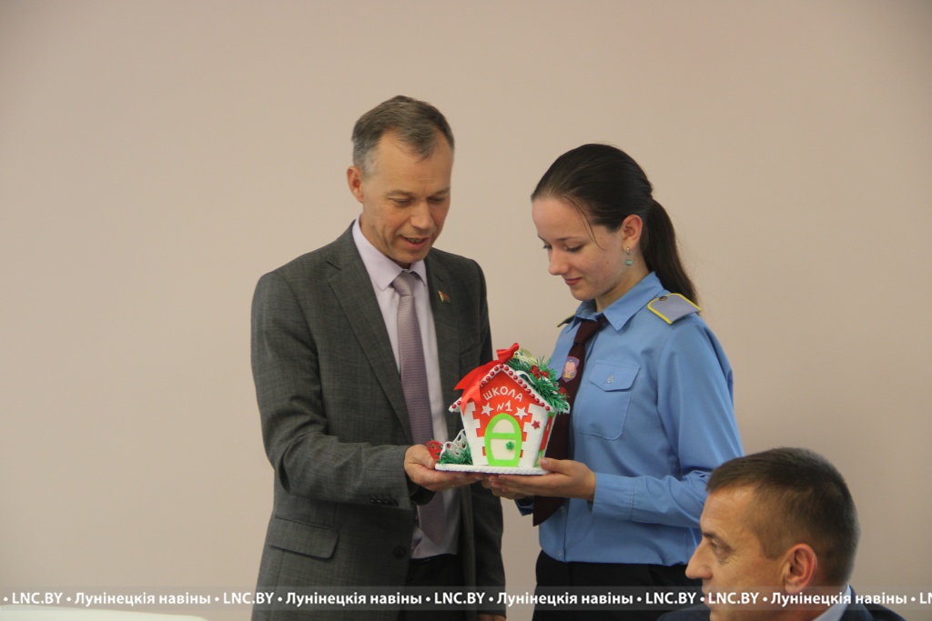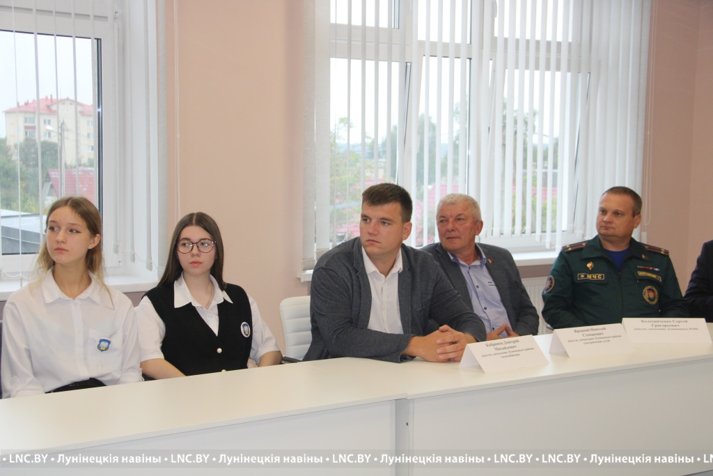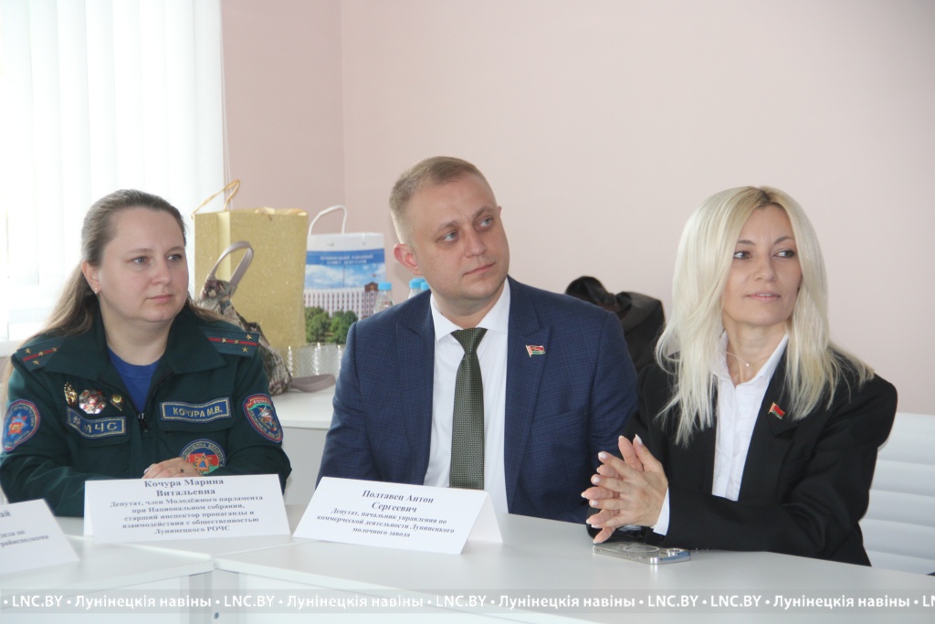 Кроме Владимира Ковалевича, в беседу активно включились руководители: отдела по образованию райисполкома – Николай Городковец, станции Лунинец – Сергей Скиба, районного отдела по чрезвычайным ситуациям – Сергей Колесниченко, районов: электросетей – Николай Яроцкий и газоснабжения – Дмитрий Кобринец, а также выпускники этой школы – начальник управления по коммерческой деятельности ОАО «Лунинецкий молочный завод» Антон Полтавец и старший инспектор РОЧС Марина Кочура.